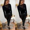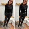 Le modèle mesure 1,70m et porte une taille 38.