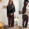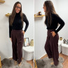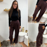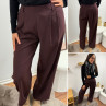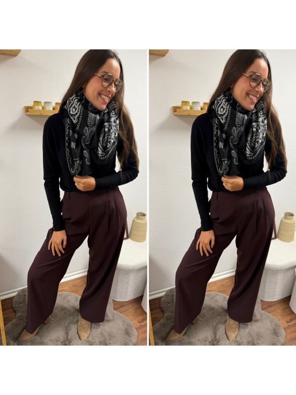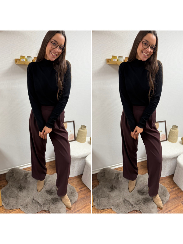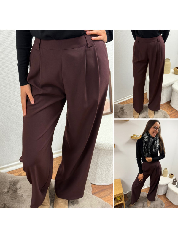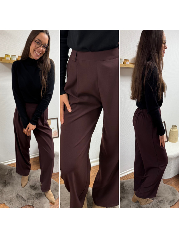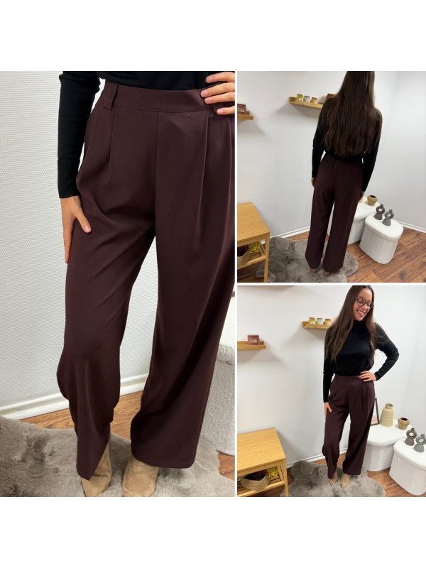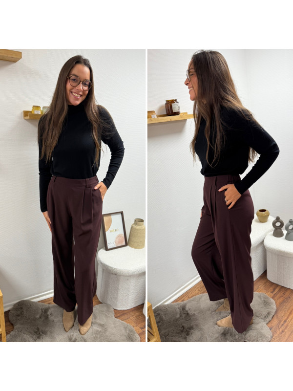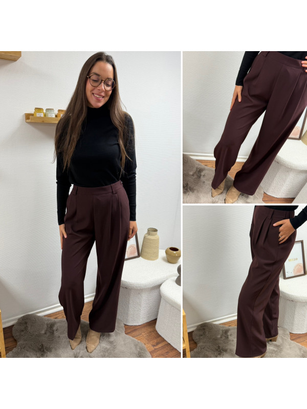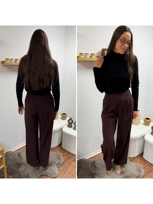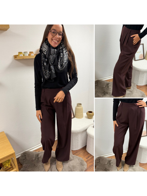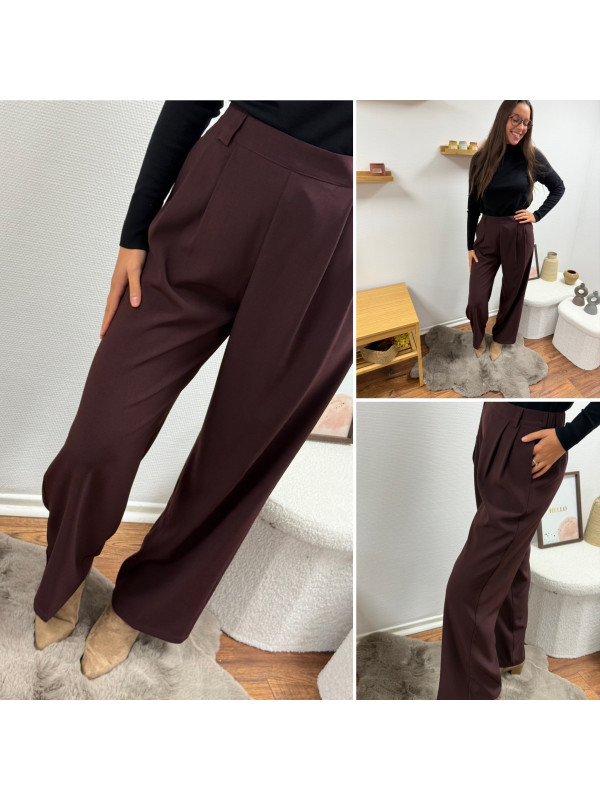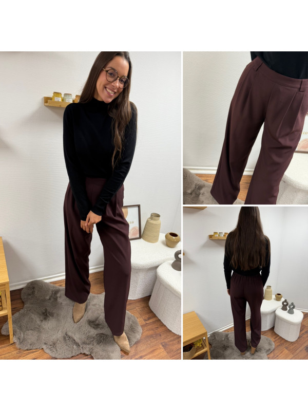 Pantalon bordeaux/marron droit fluide à pinces