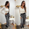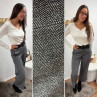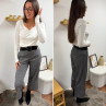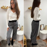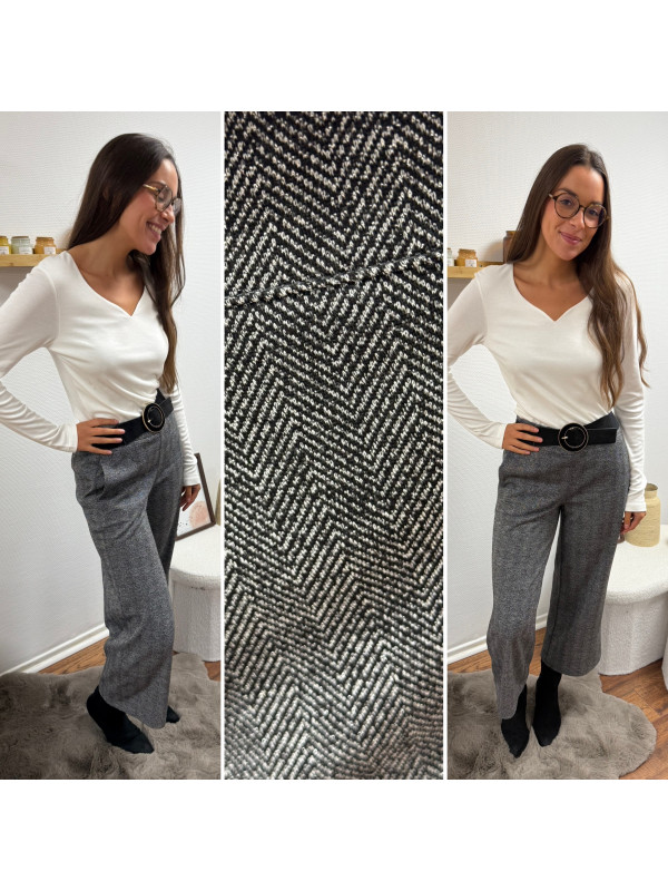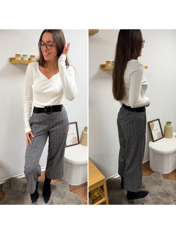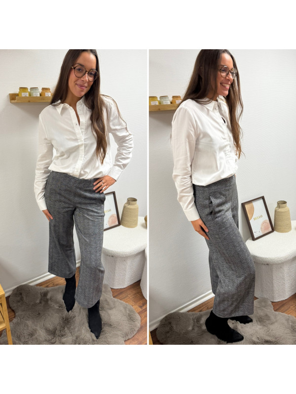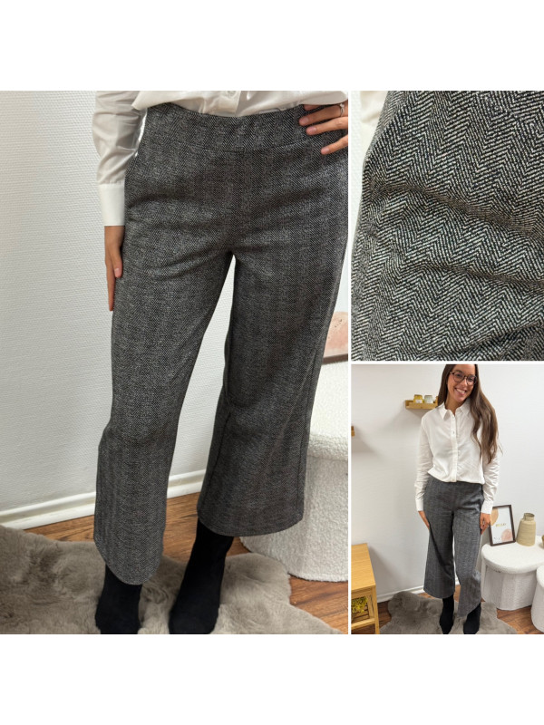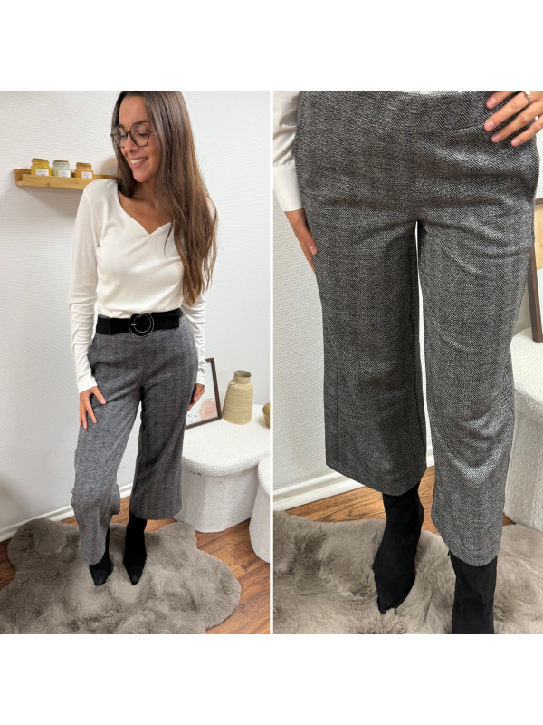 Pantalon fluide évasé 7/8ème en tweed noir et blanc avec points de lurex (du 36 au 46)