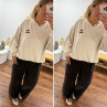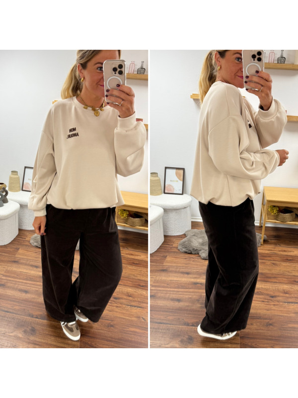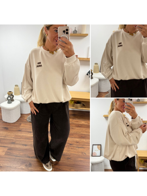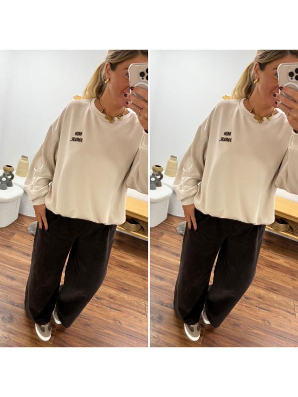 Sweat beige tout doux avec écriture mon amour chocolat froncée dans le bas et sur les manches