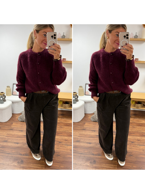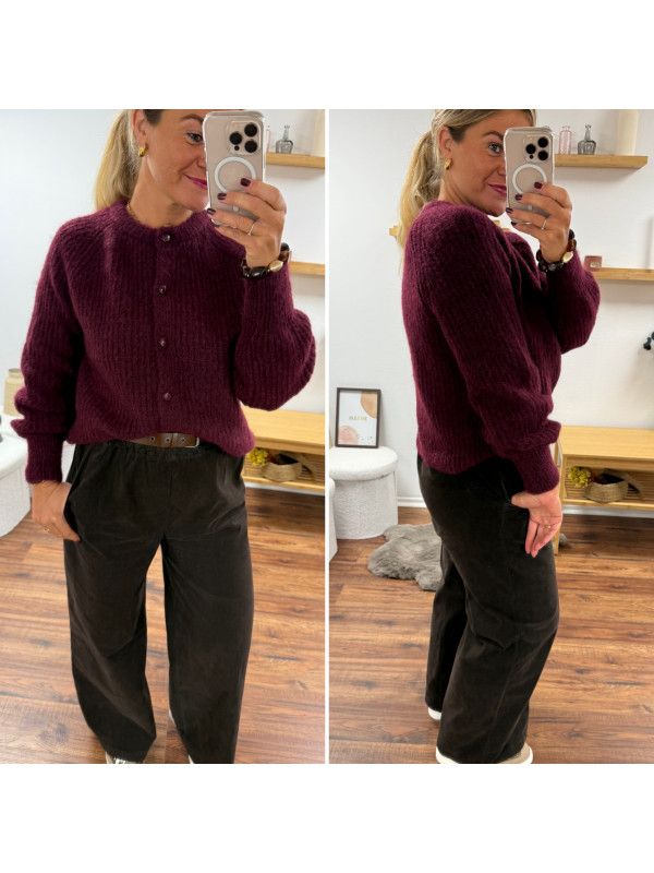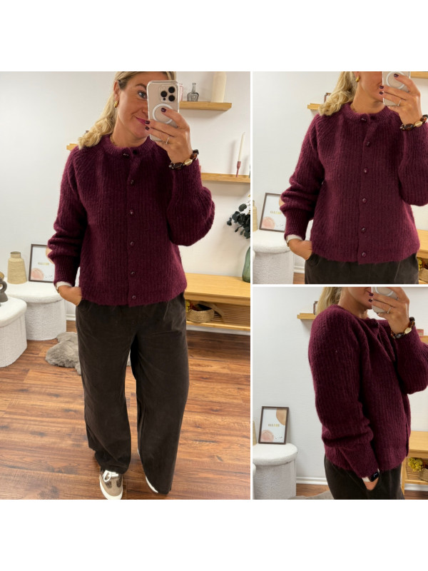 Gilet bordeaux/cassis à boutons ronds bordeaux