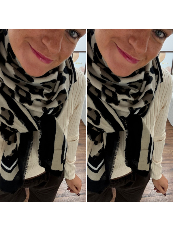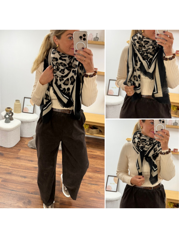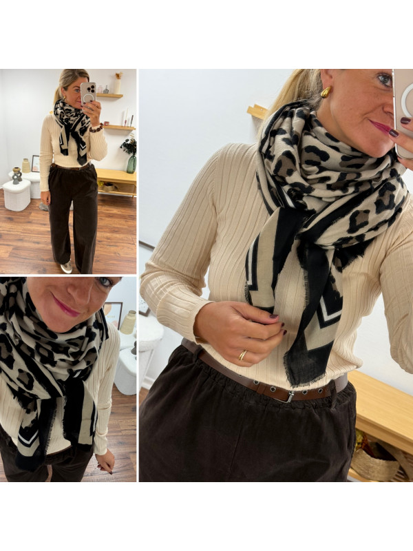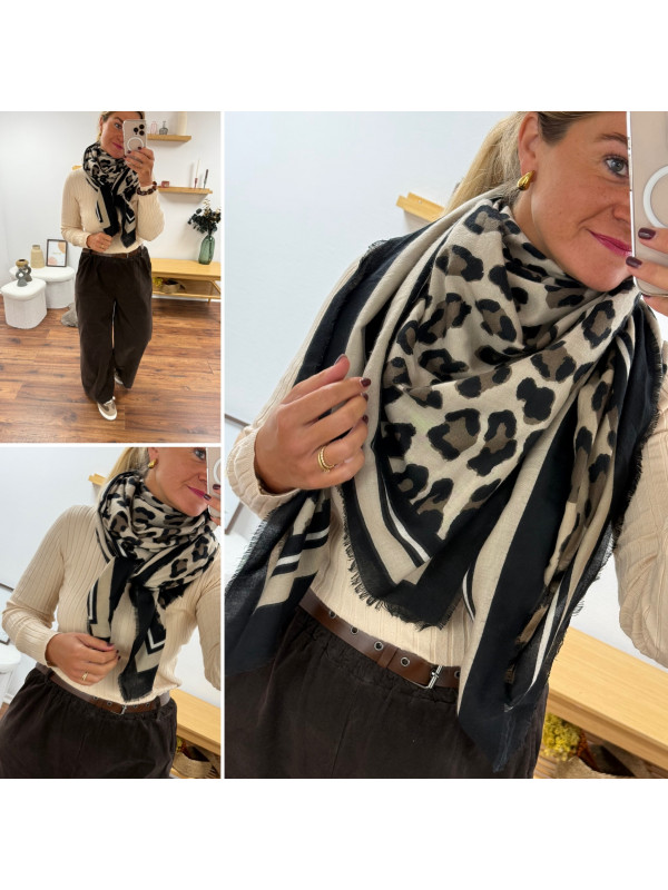 Grande étole à gros imprimés léopard noirs et beiges (uniquement dispo en boutique)