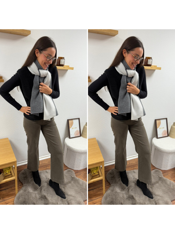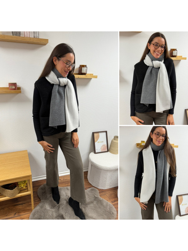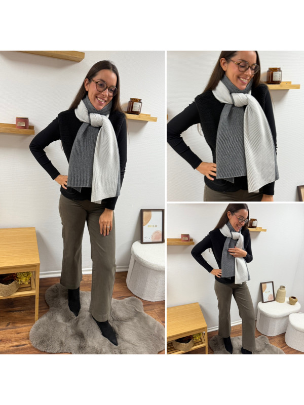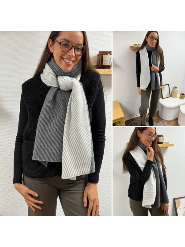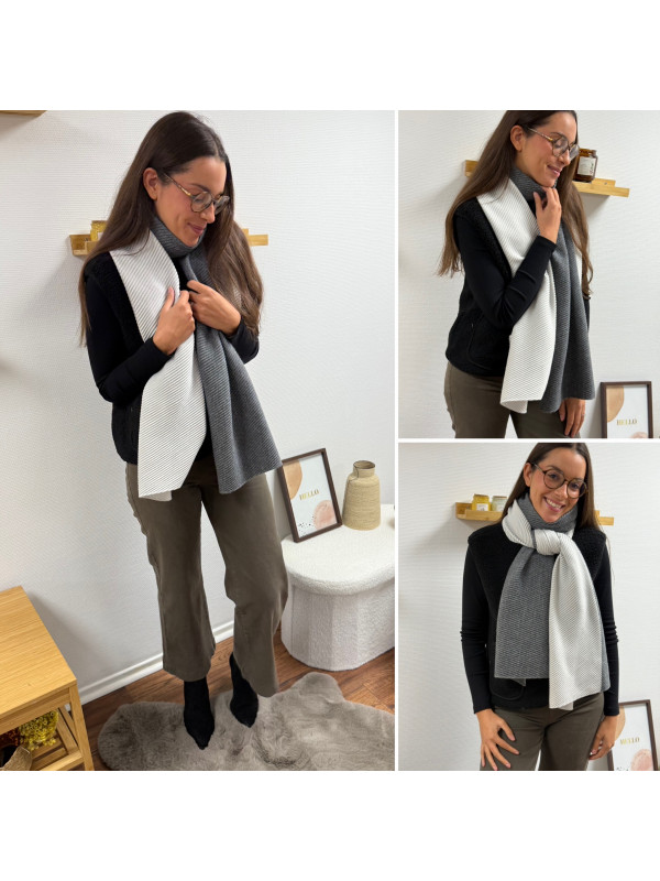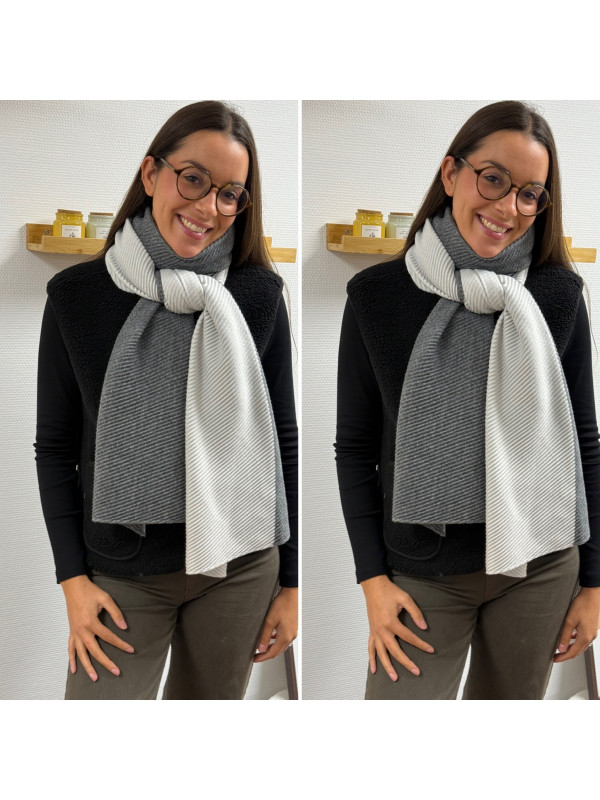 Grosse étole avec plissé fin grise et blanche