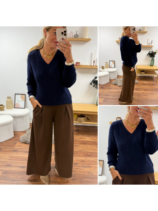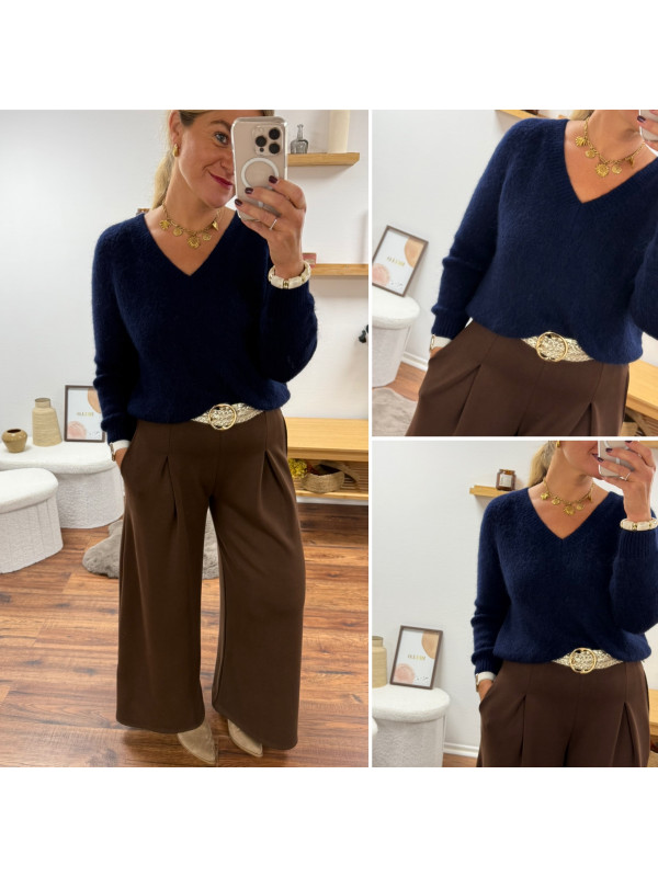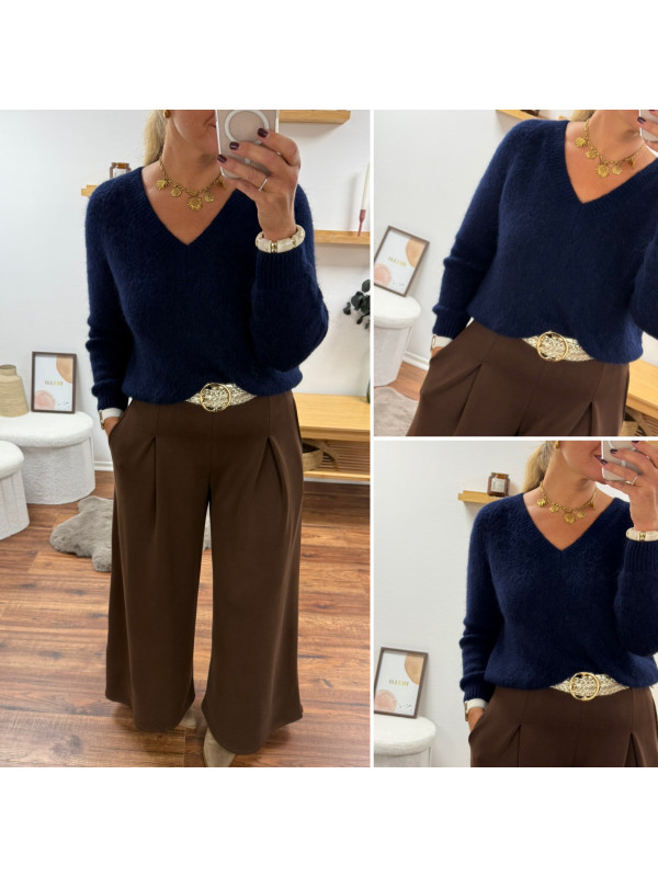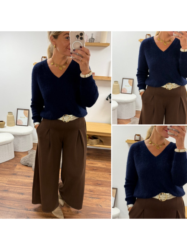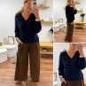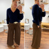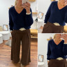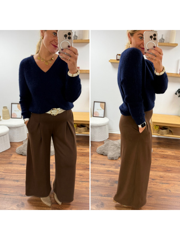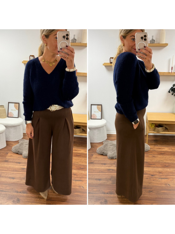 Pantalon fluide souple chocolat très évasé avec pinces Cet...