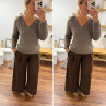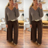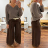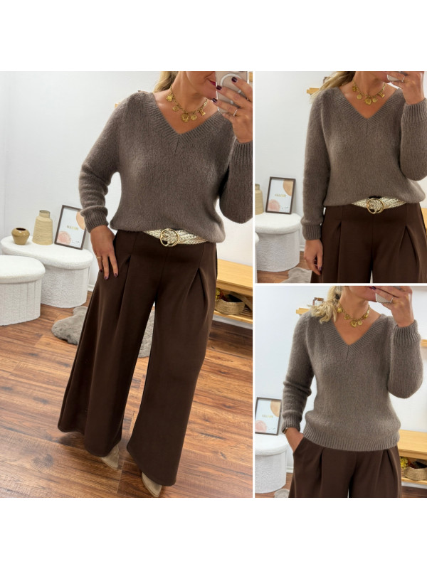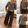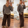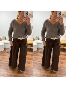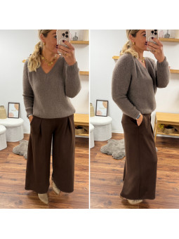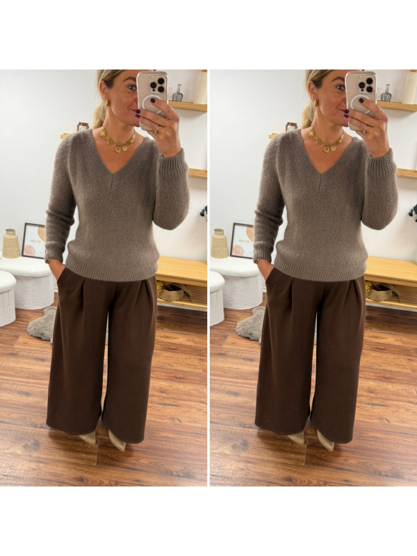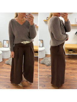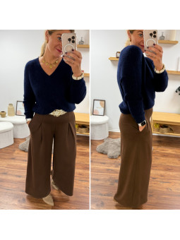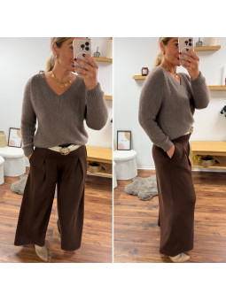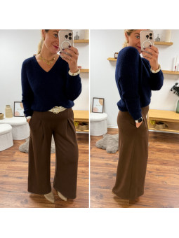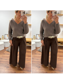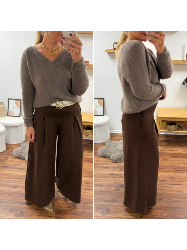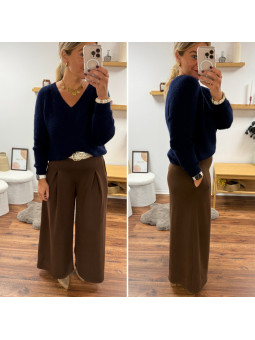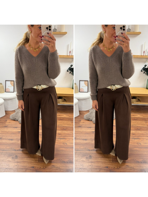 Pantalon fluide souple chocolat très évasé avec pinces Cet...