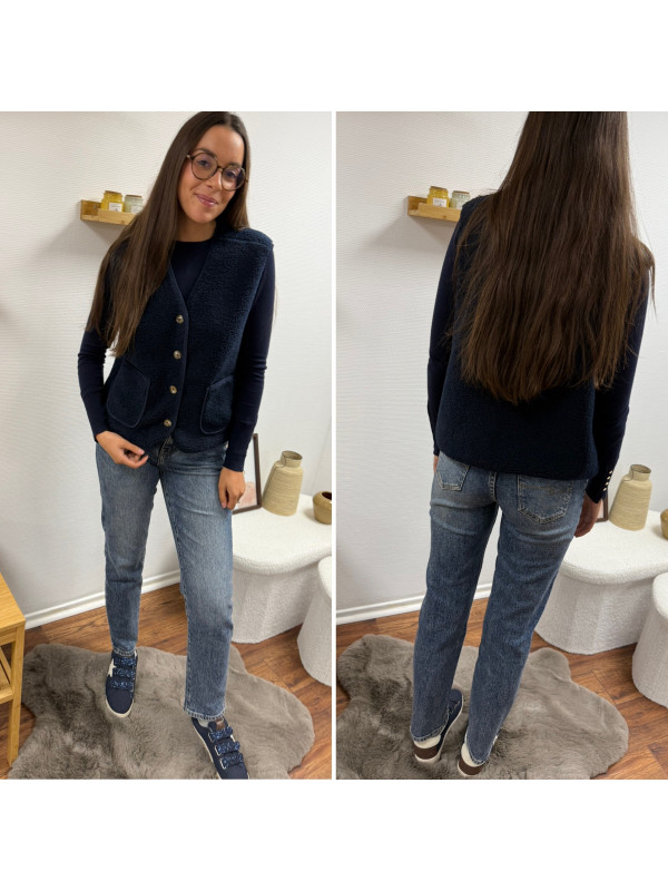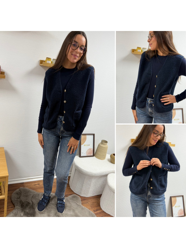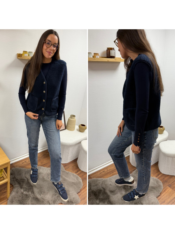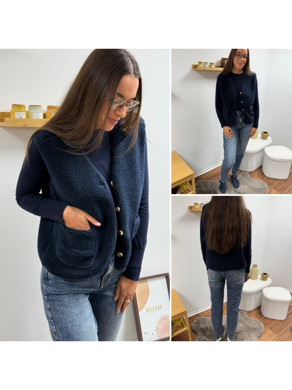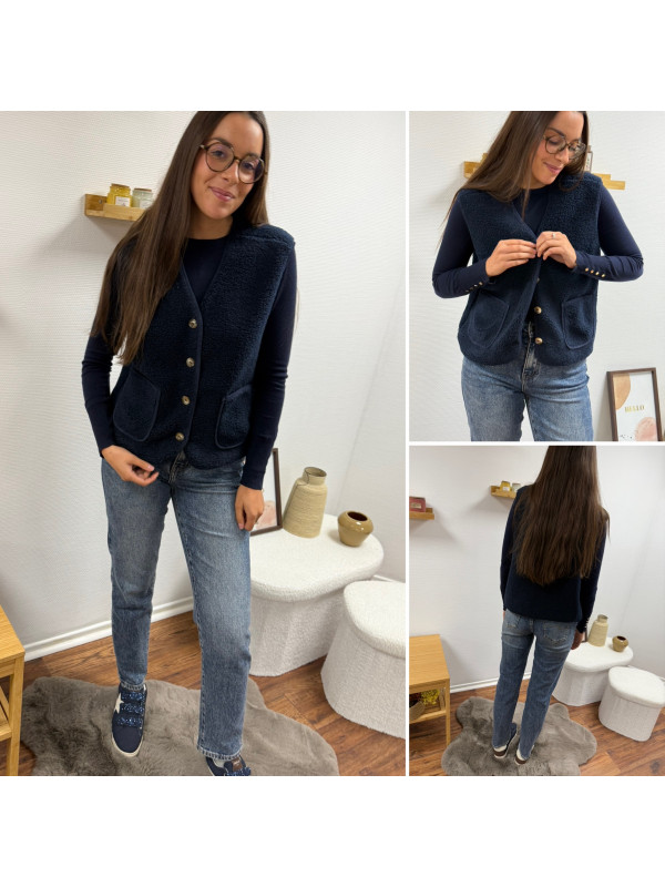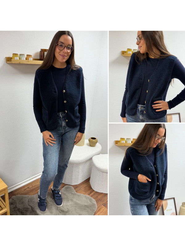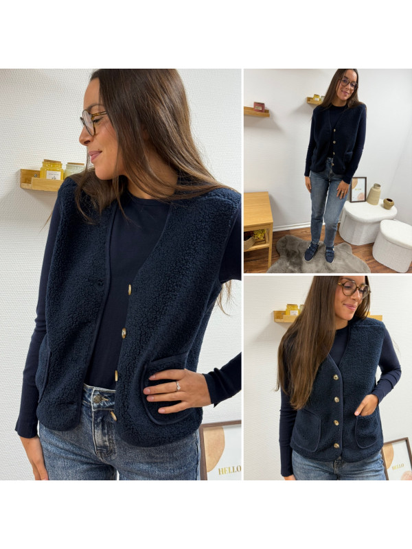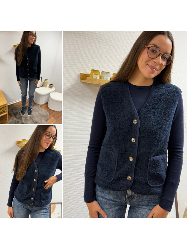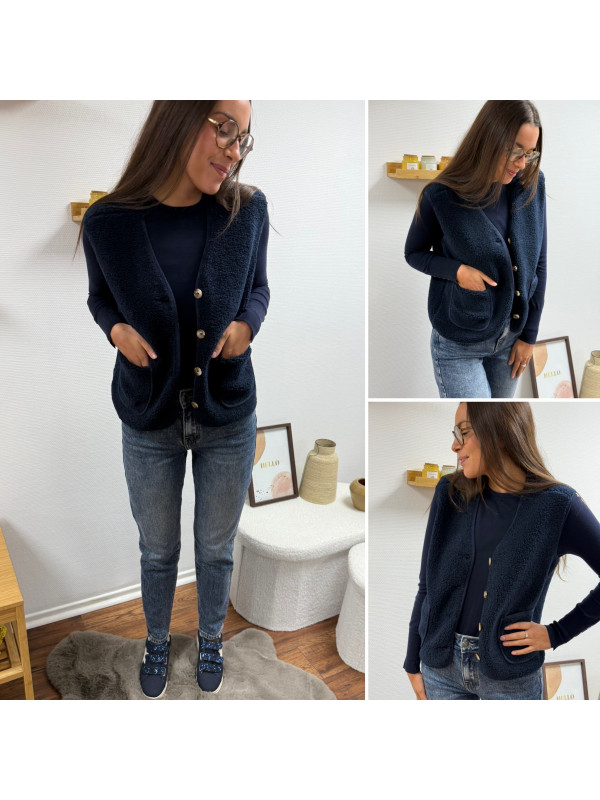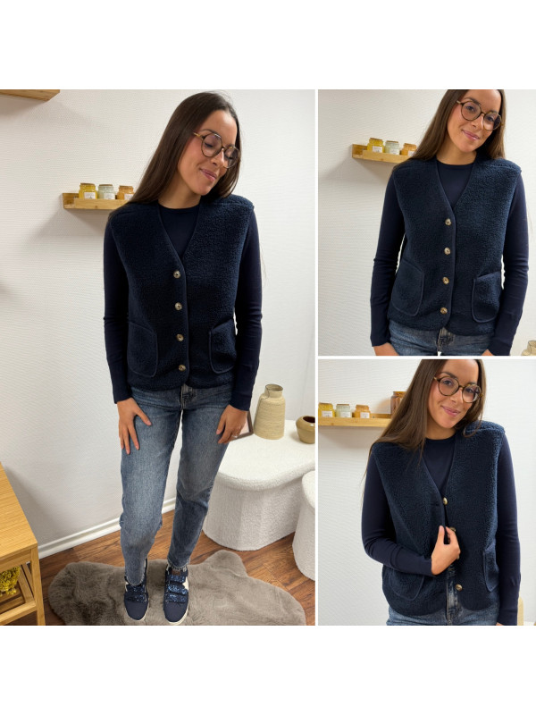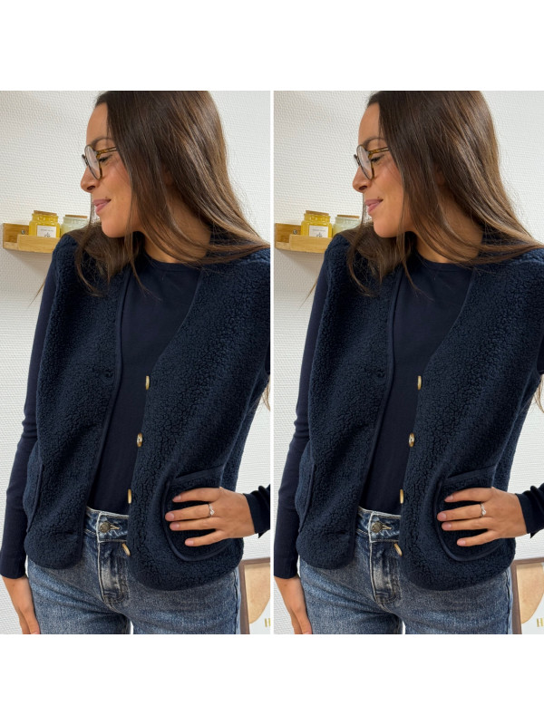 Gilet à bouclettes sans manches bleu marine