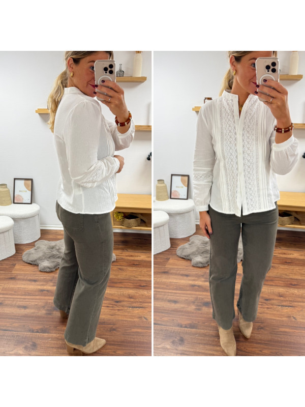 Jean wide leg kaki à ponts avec boutons dorés Disponible du 34...