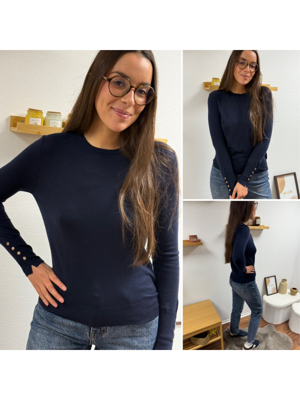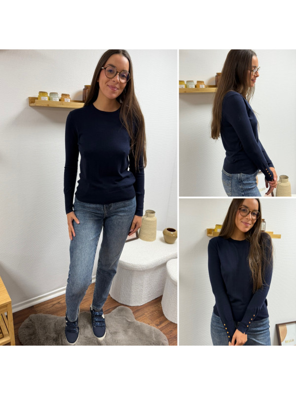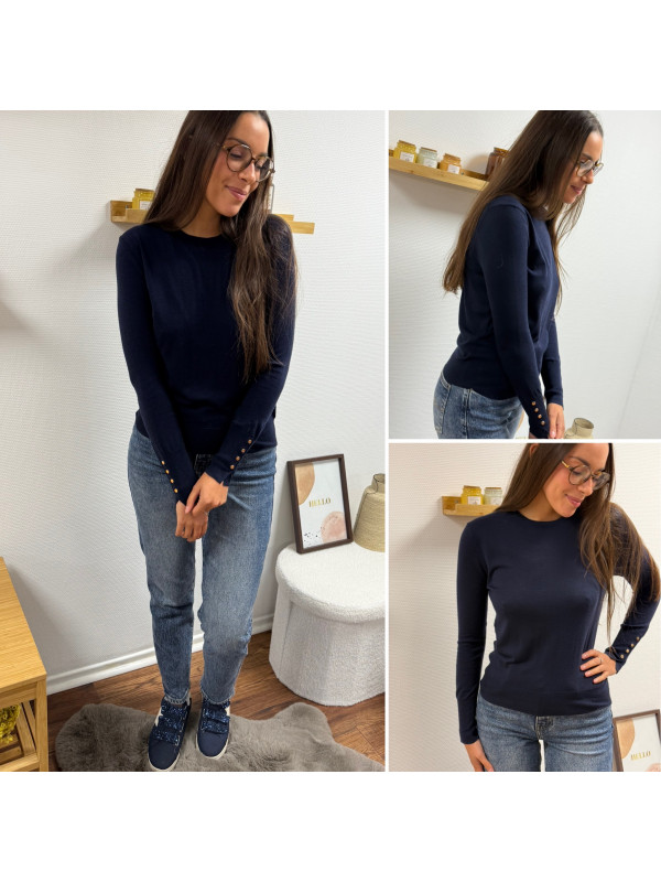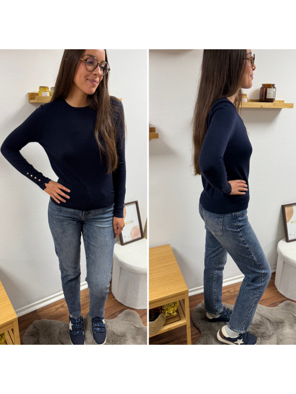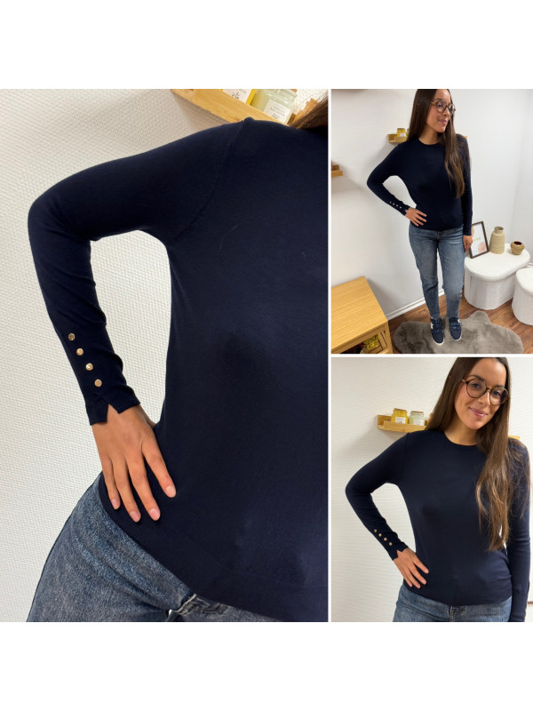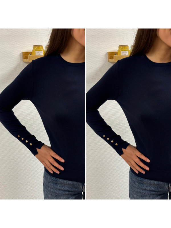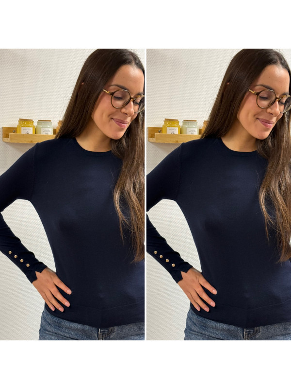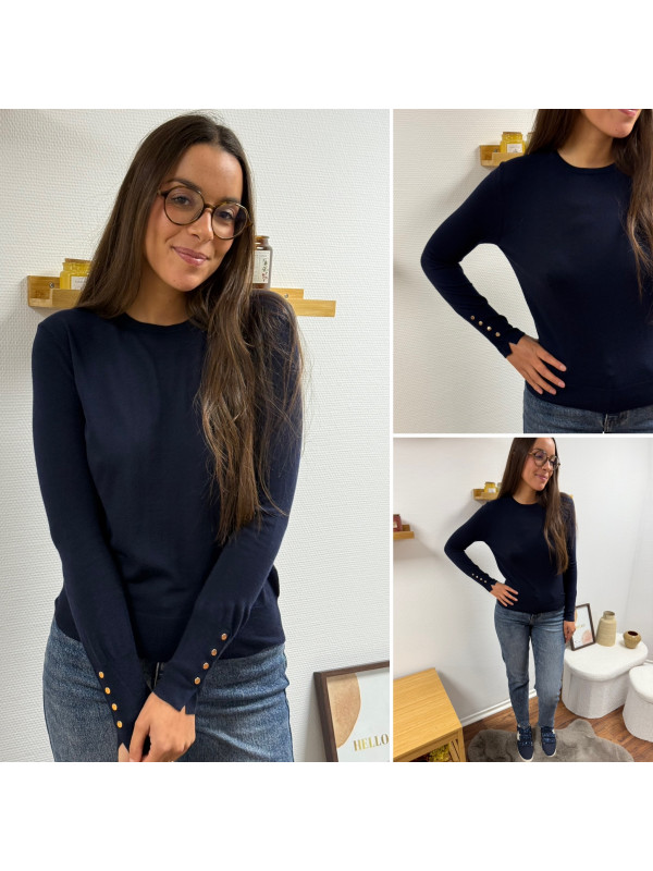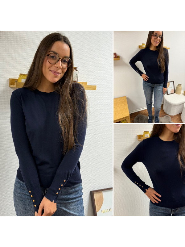 Pull bleu marine avec du cachemire avec boutons dorés sur les poignets