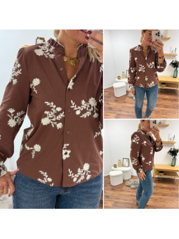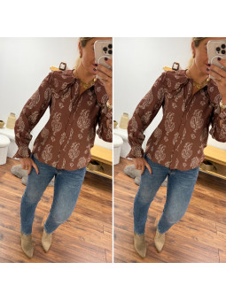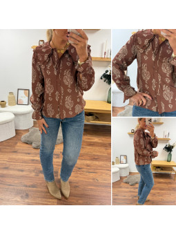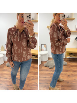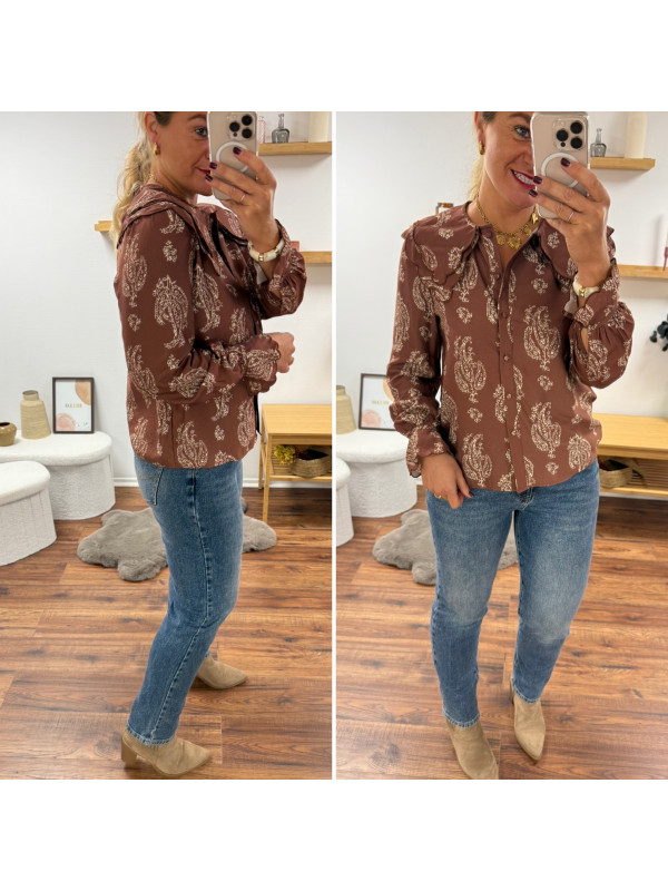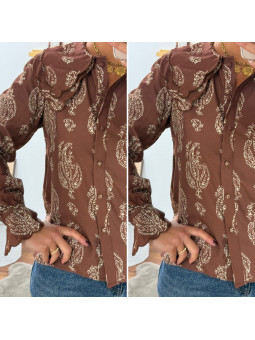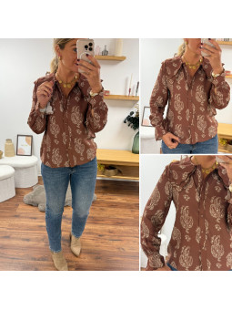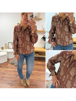 Chemise couleur brique à motifs cachemire avec col claudine Le...