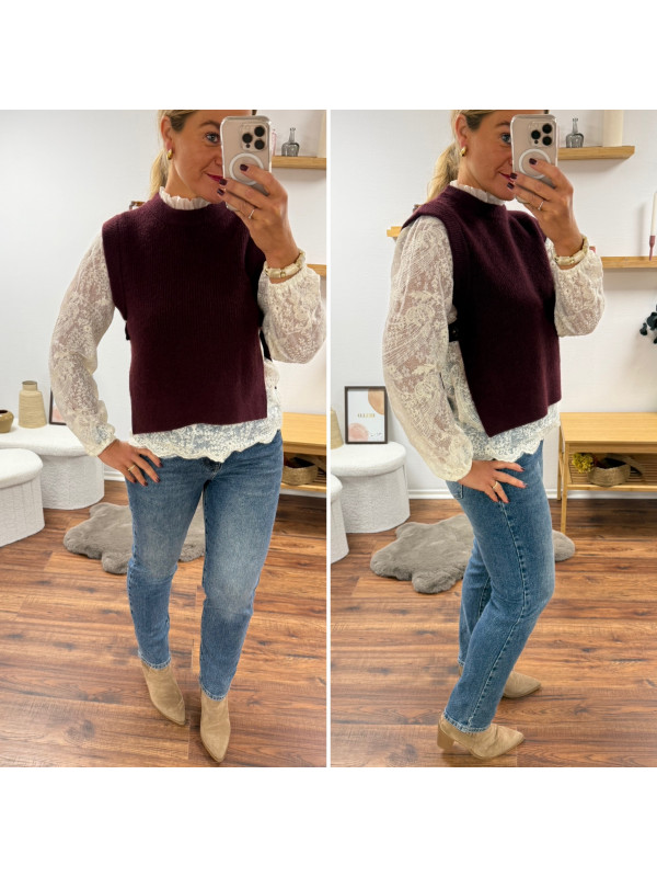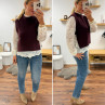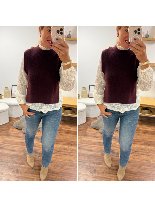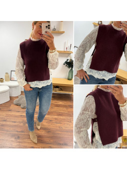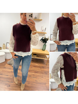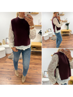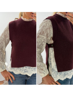 Pull sans manches bordeaux ouvert avec bouton sur le côté Cet...