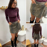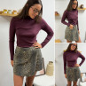Col roulé sous pull moulant violine bordeaux tissu côtelé (du...
