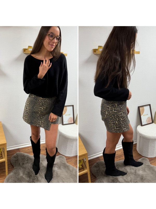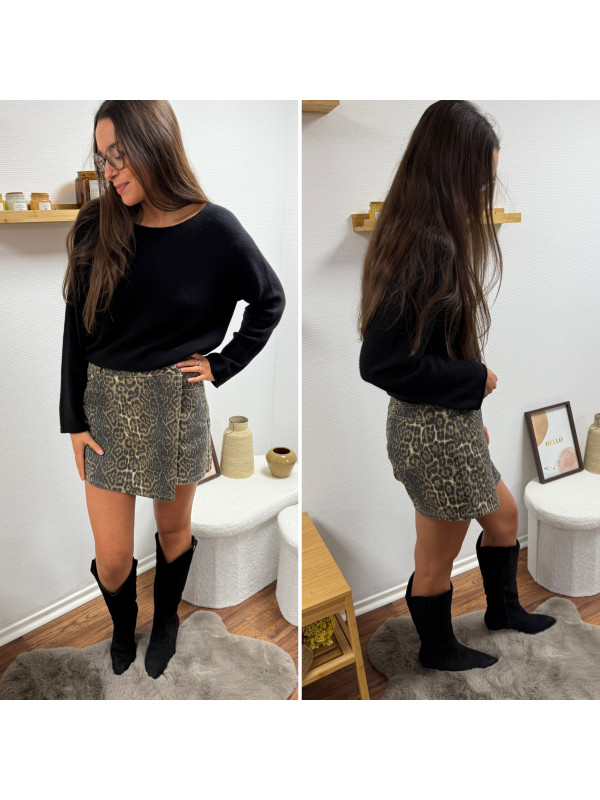 Jupe short léopard en toile avec poches