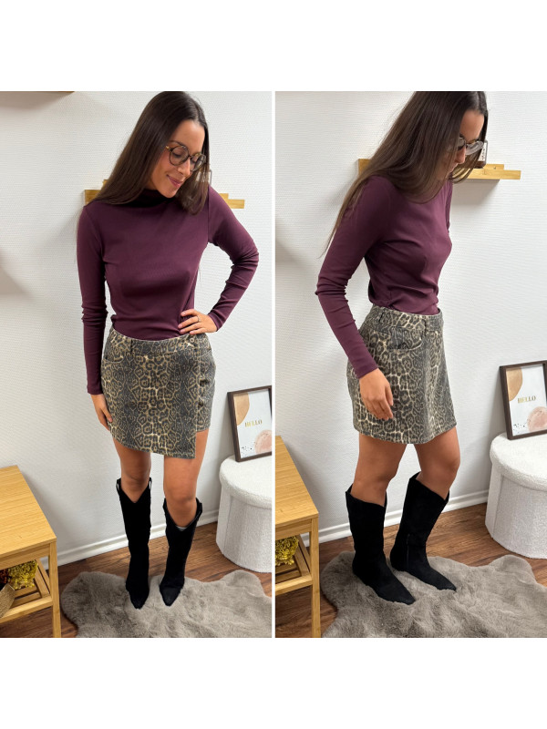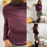 Col roulé sous pull moulant violine bordeaux tissu côtelé (du 36 au 46)