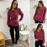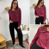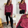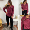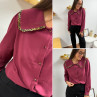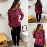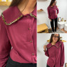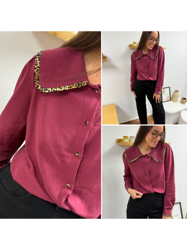 Chemise bordeaux avec col claudine et volants léopard sur le col et les poignets