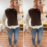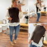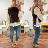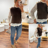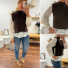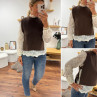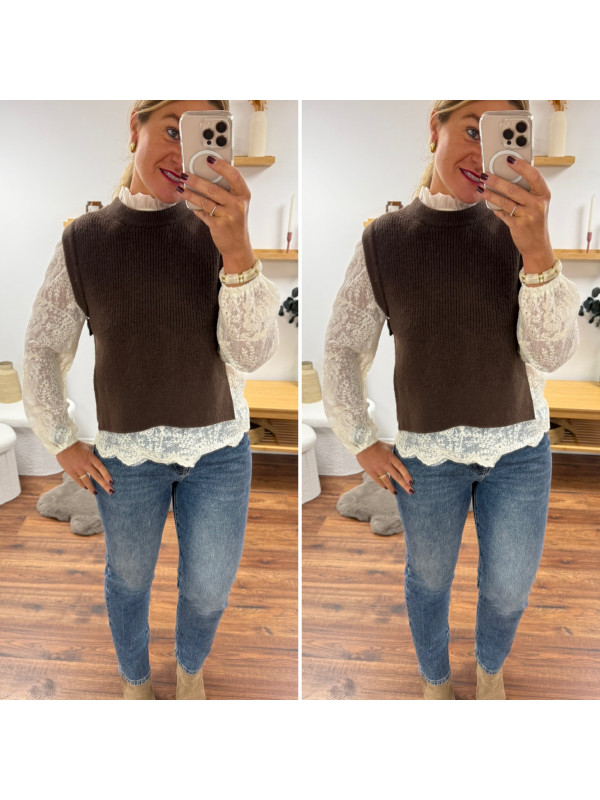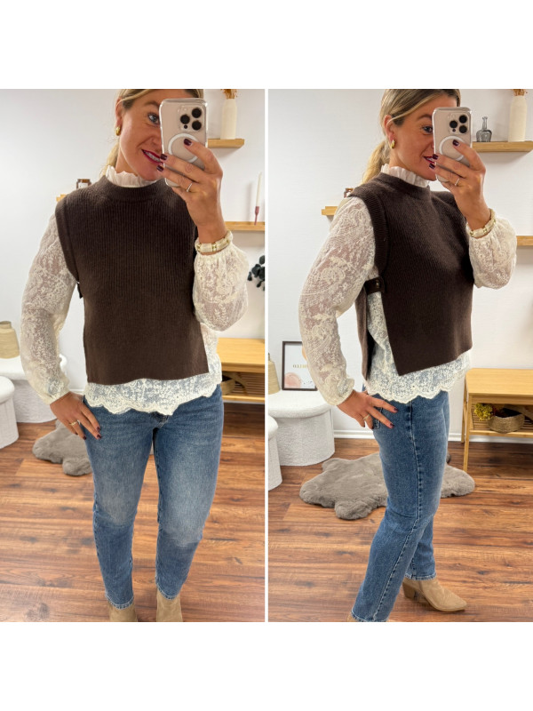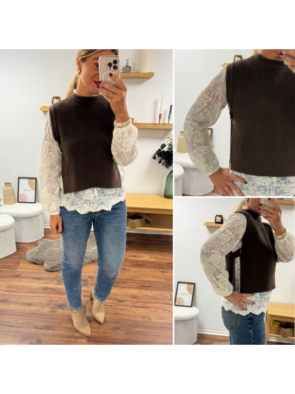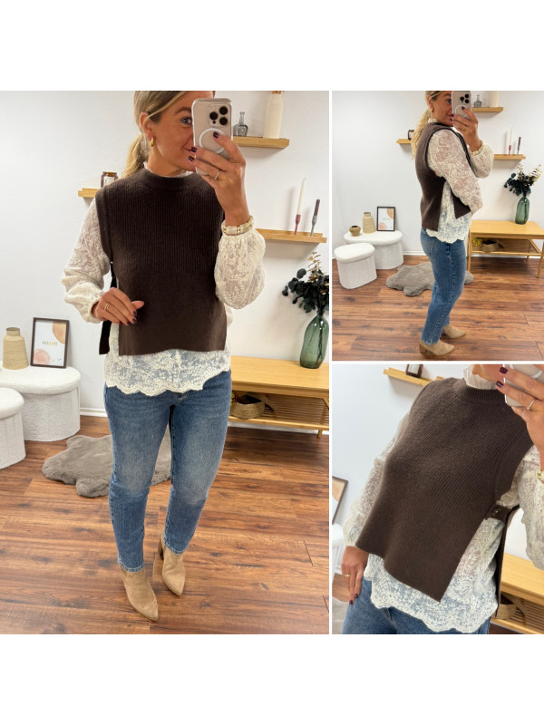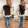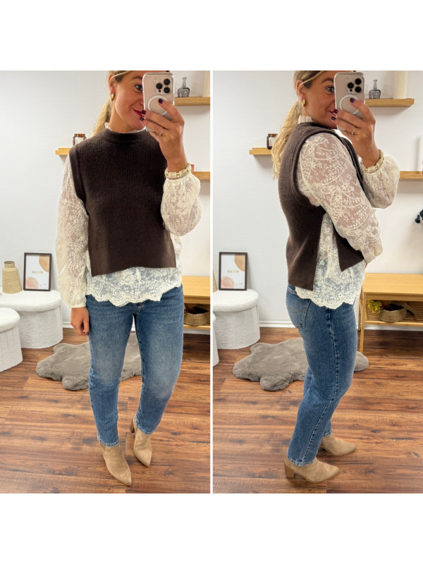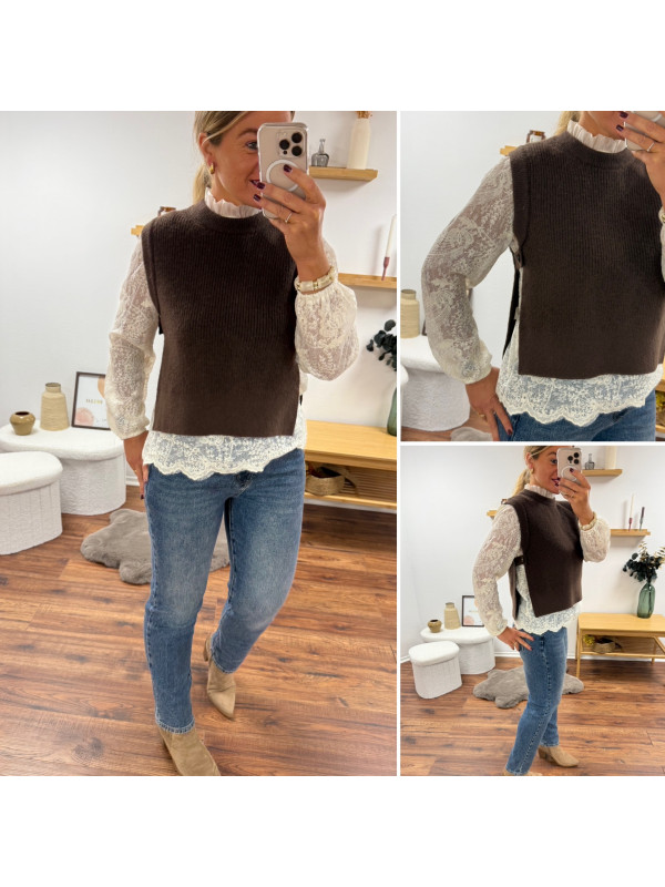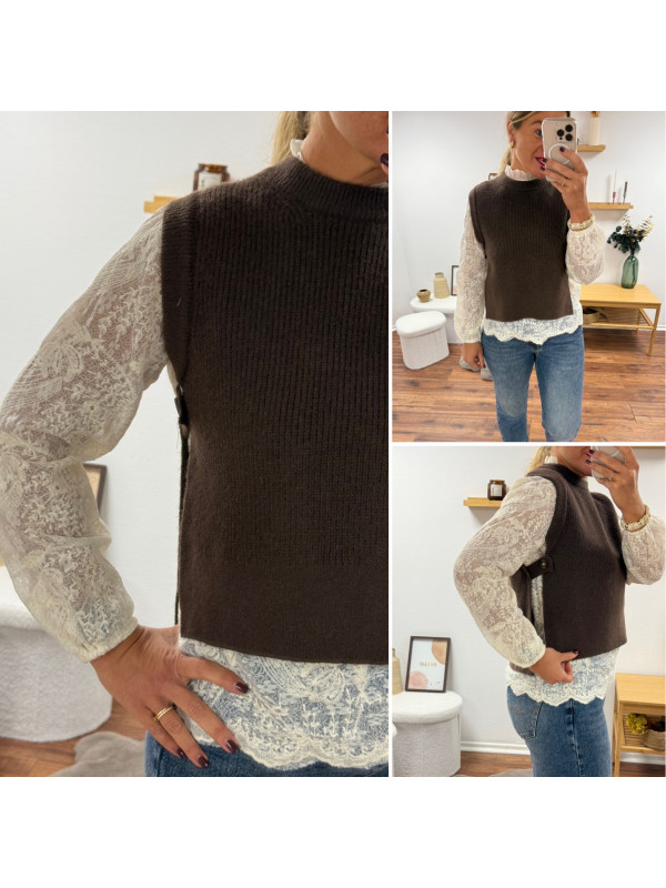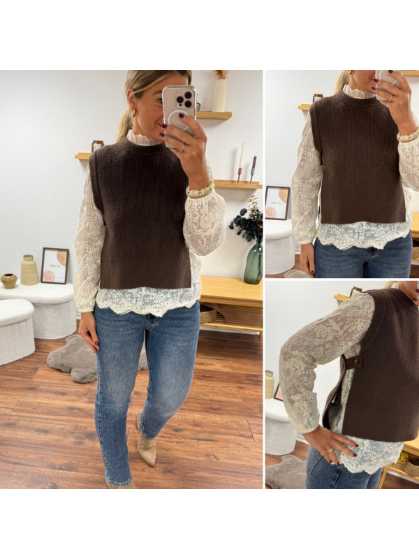 Pull sans manches chocolat ouvert avec bouton sur le côté