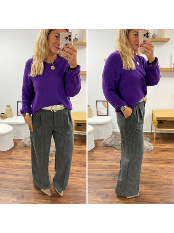 Pantalon gris fluide avec rayures blanches - fabrication...