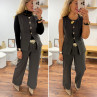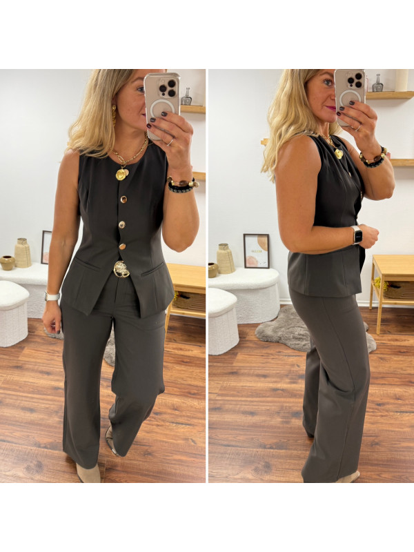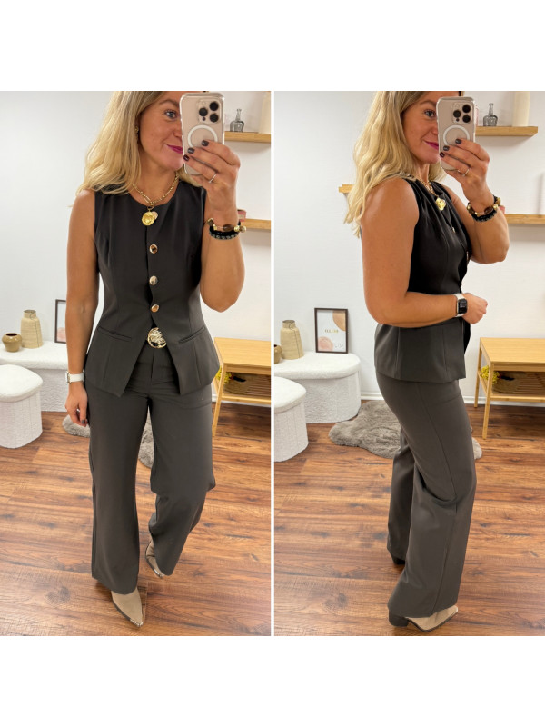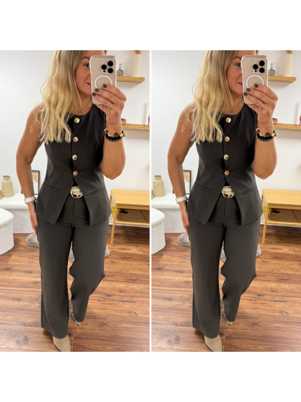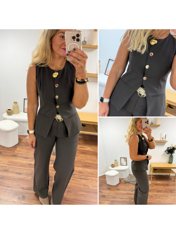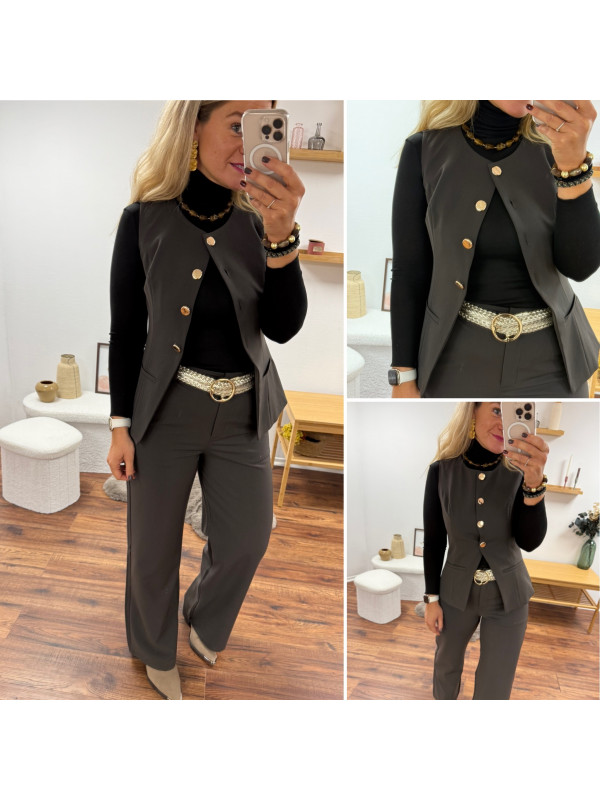 Gilet de tailleur sans manches chocolat avec boutons dorés