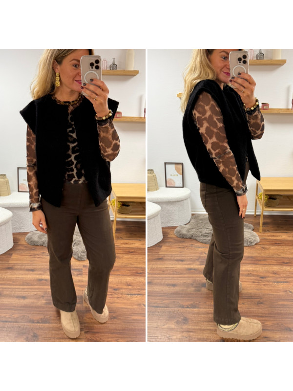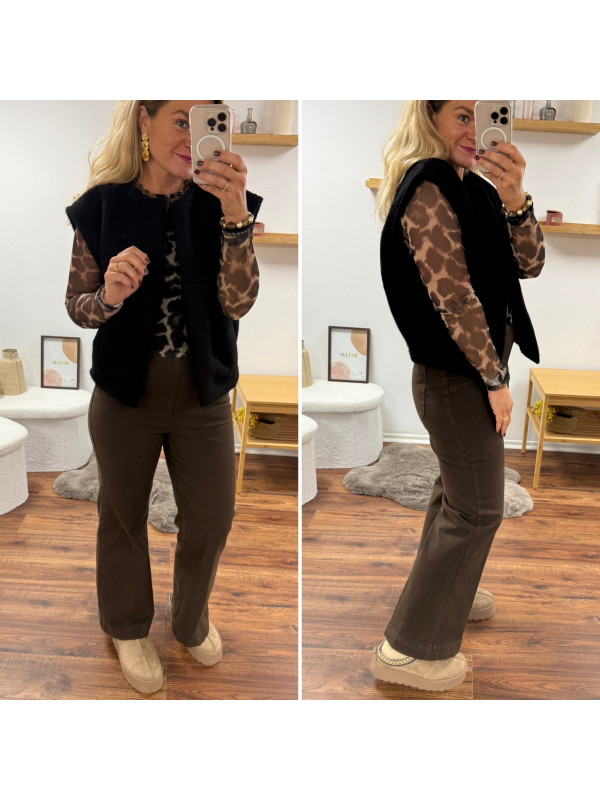 Jean chocolat à pont avec boutons dorés Disponible du 34 au...