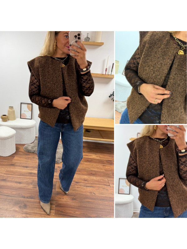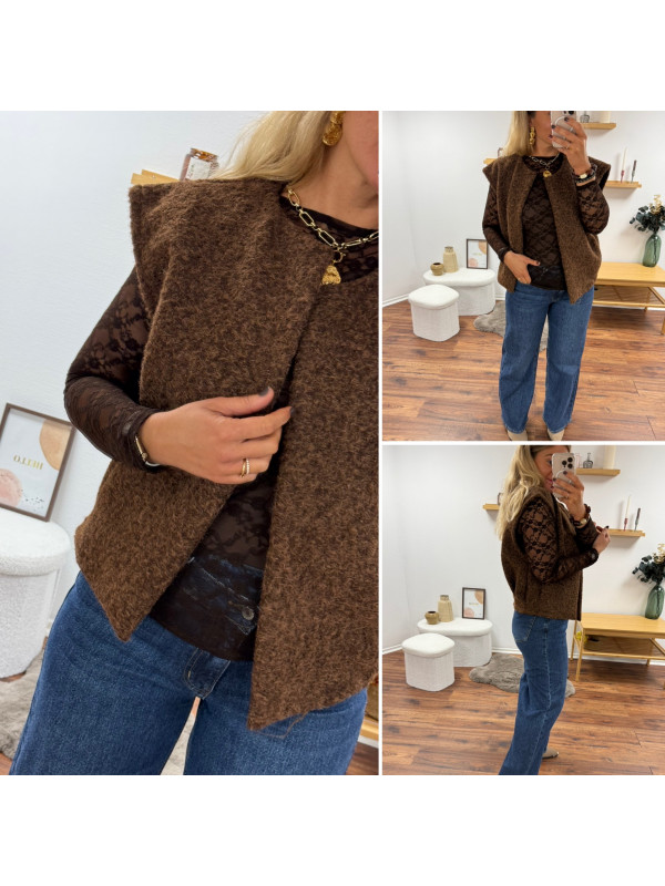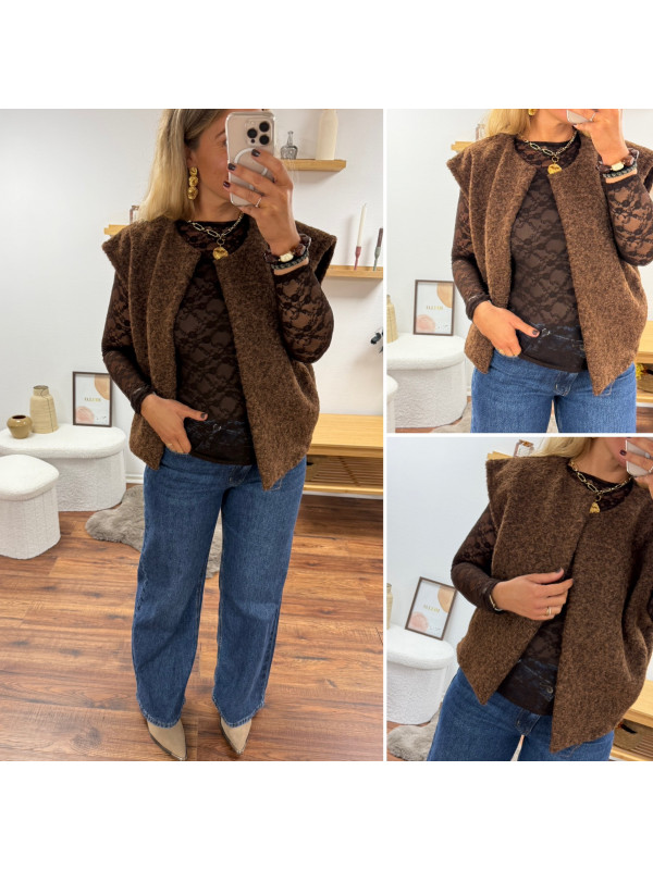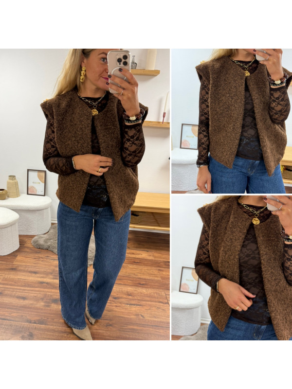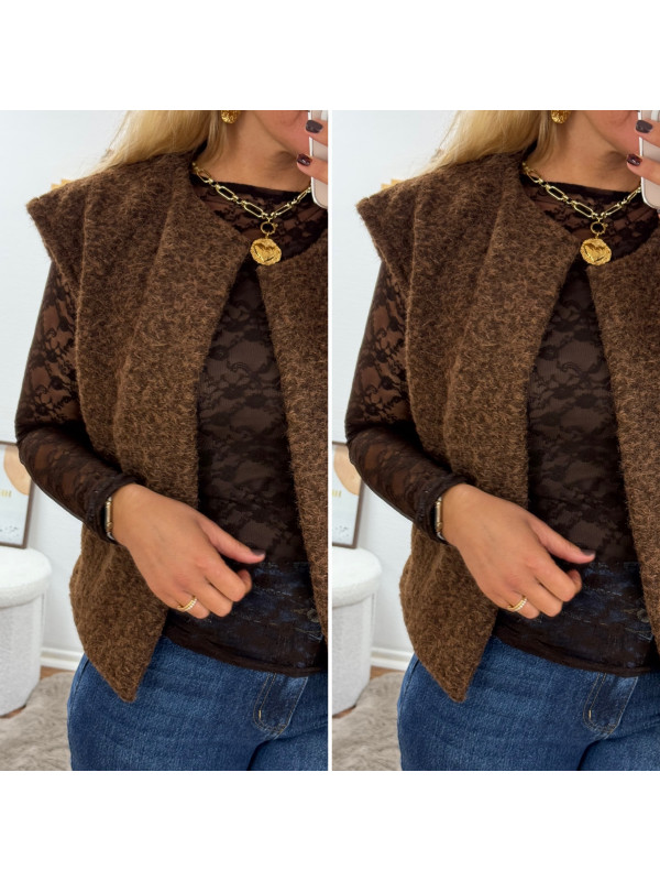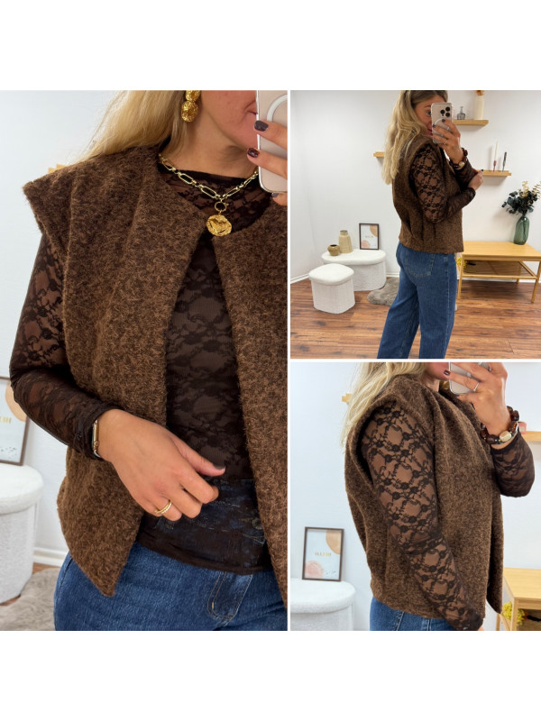 Veste sans manches chocolat façon laine bouillie