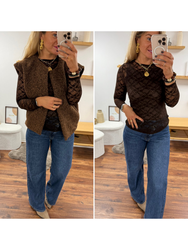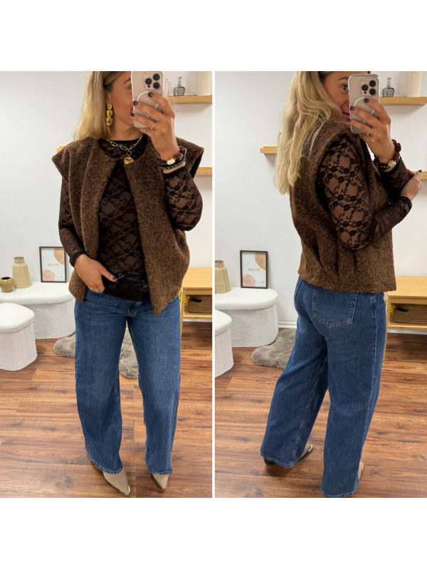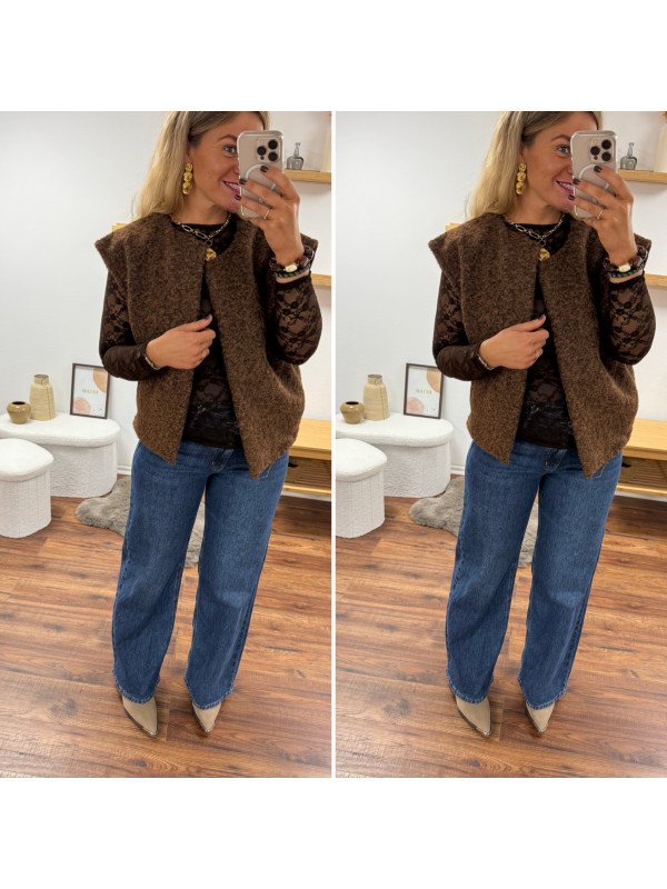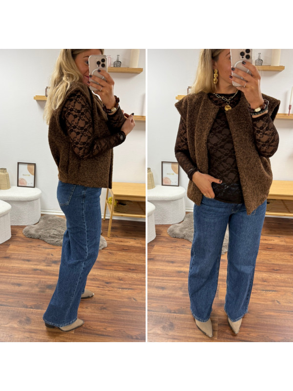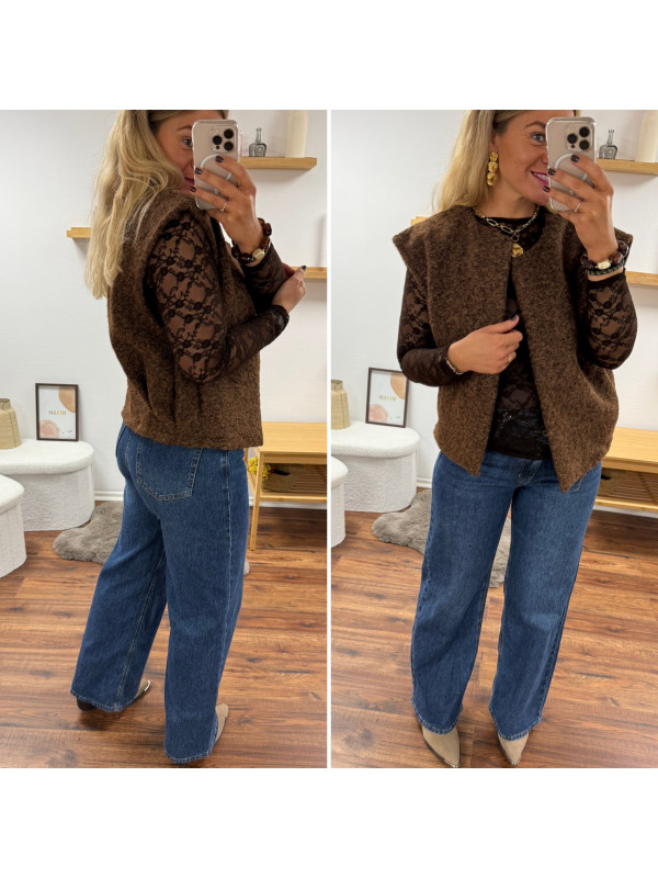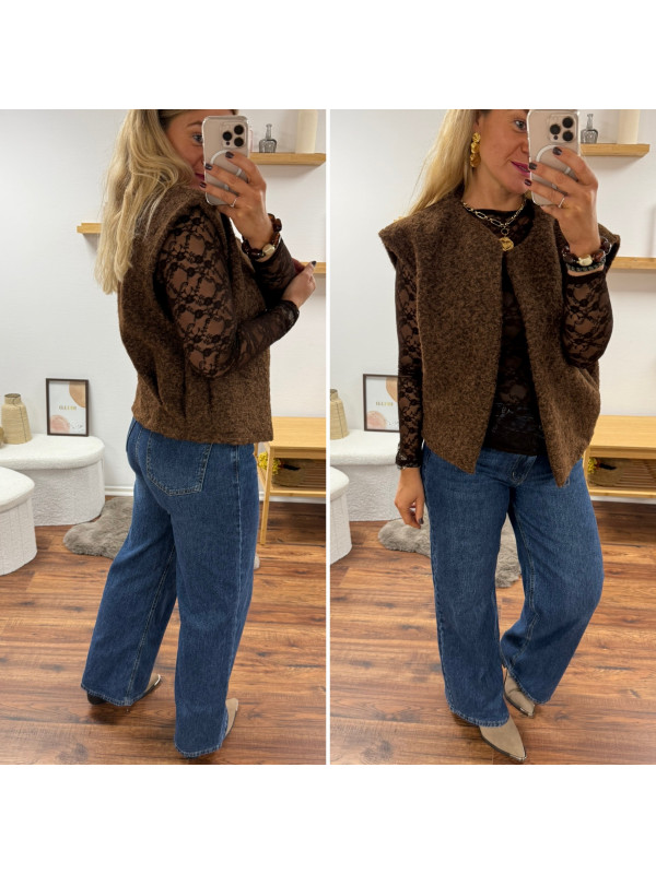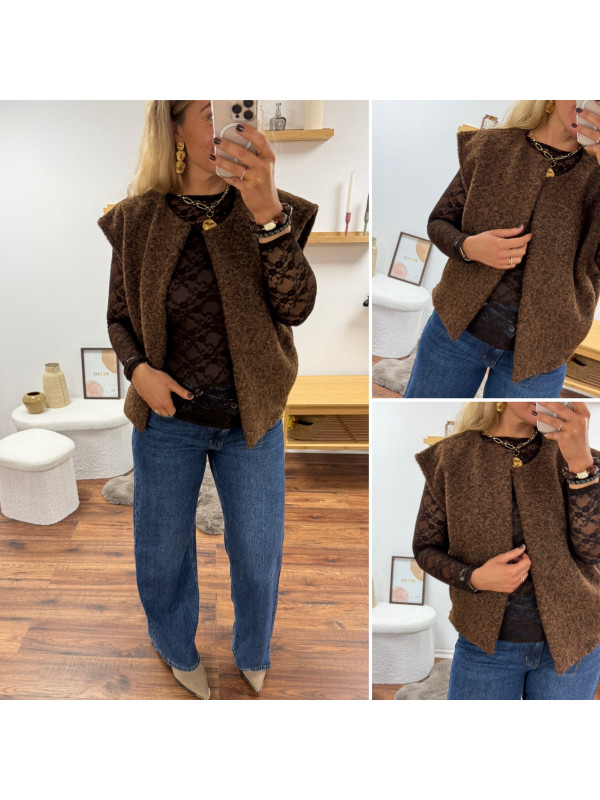 Veste sans manches chocolat façon laine bouillie