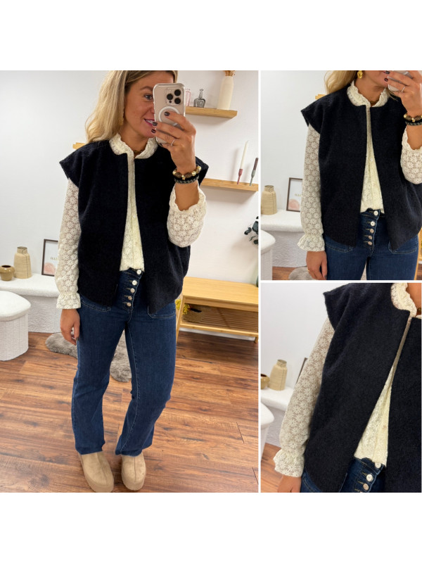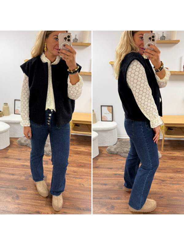 Blouse ajourée écrue avec broderies fleurs Le S équivaut au...