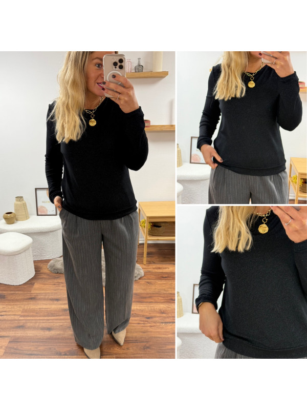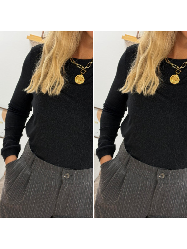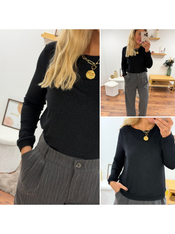 Tee shirt à manches longues noir avec points de lurex pailletés (du 36 au 46)