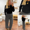 Pantalon gris fluide avec rayures blanches - fabrication...