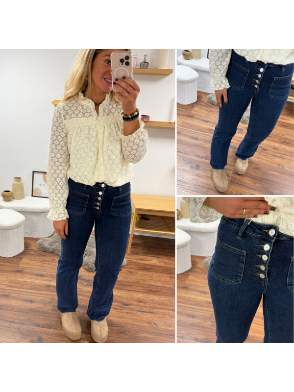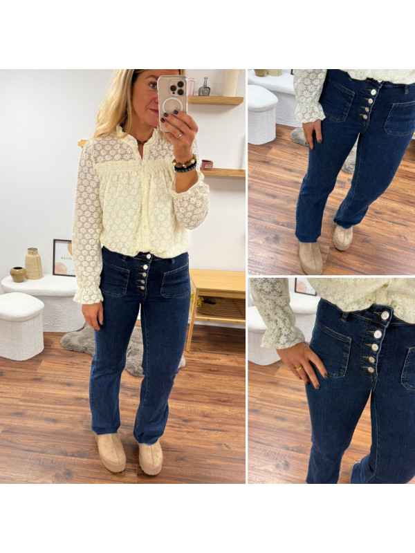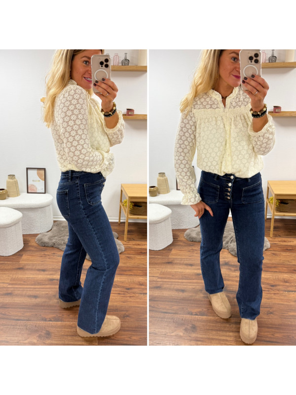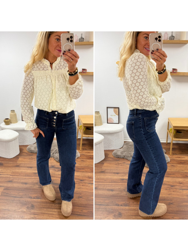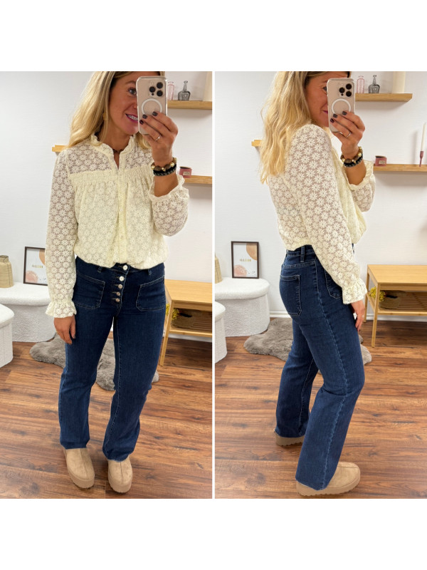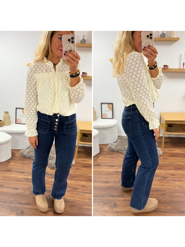 Blouse ajourée écrue avec broderies fleurs Le S équivaut au...