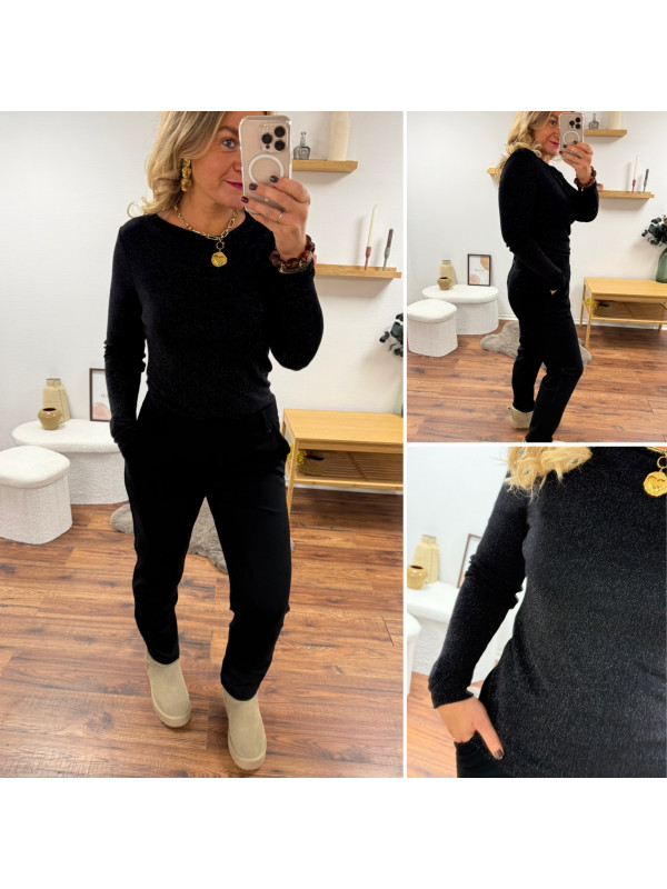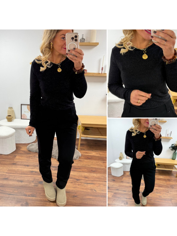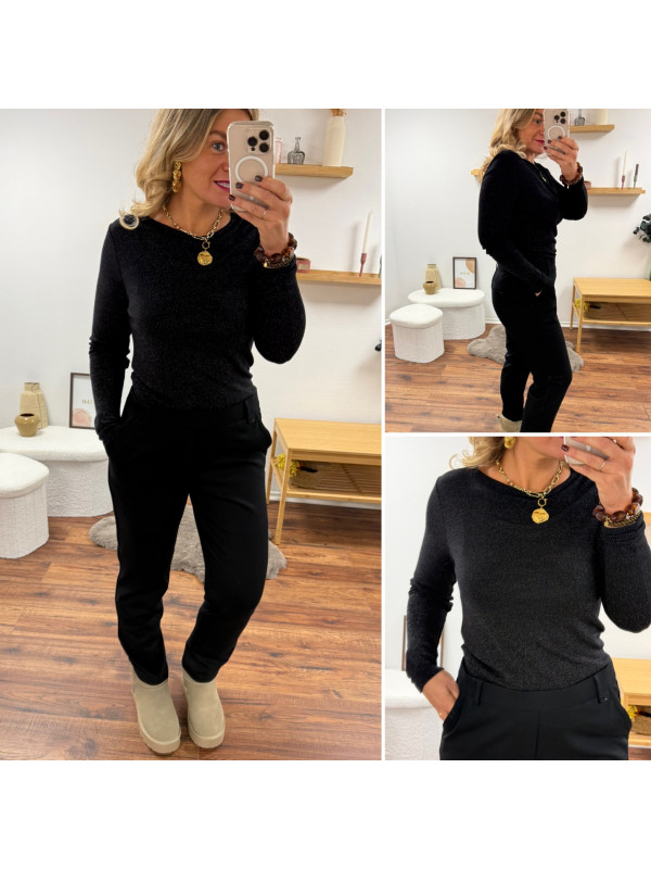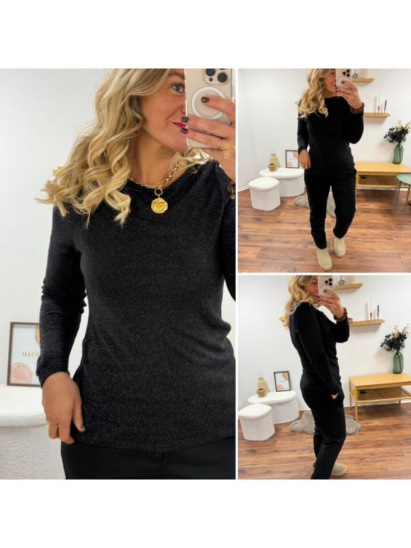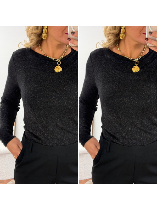 Tee shirt à manches longues noir avec points de lurex brillants (du 36 au 46)