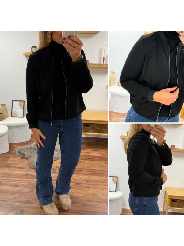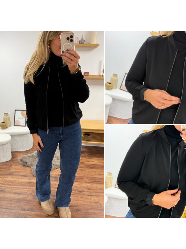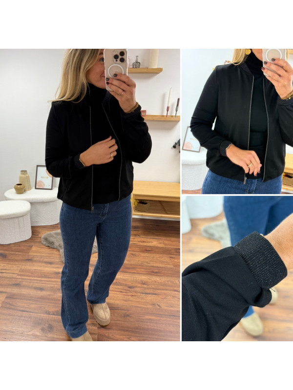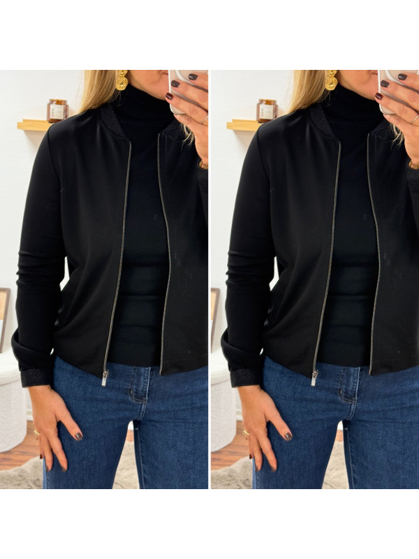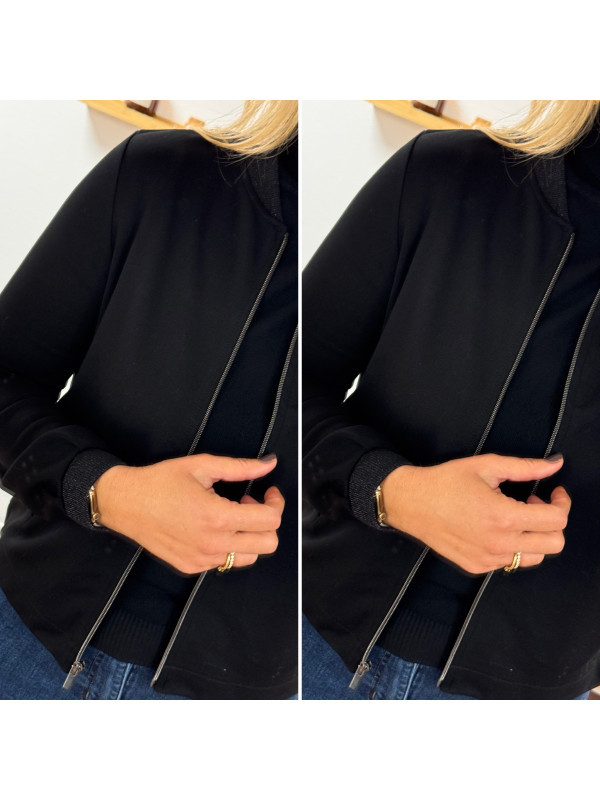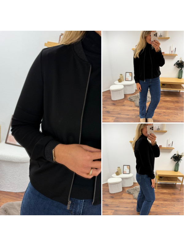 Veste noire avec bandes lurex sur le col et les poignets (du 36 au 46)