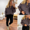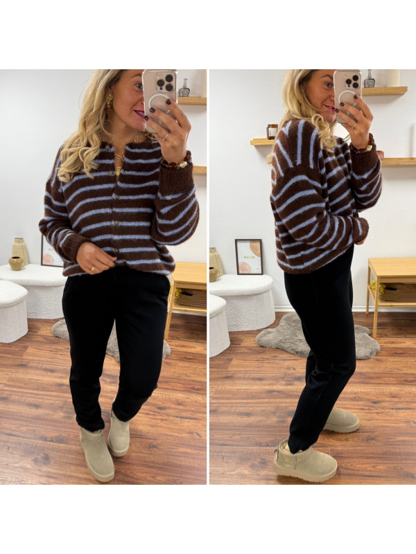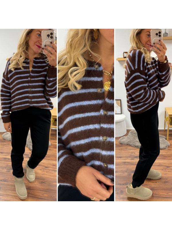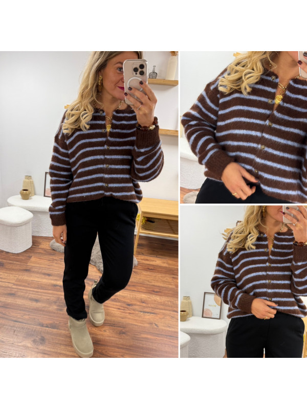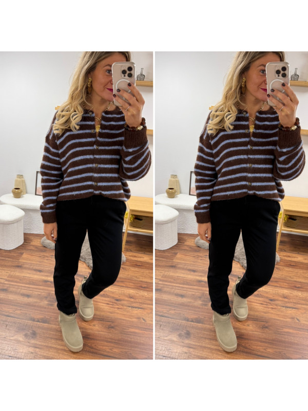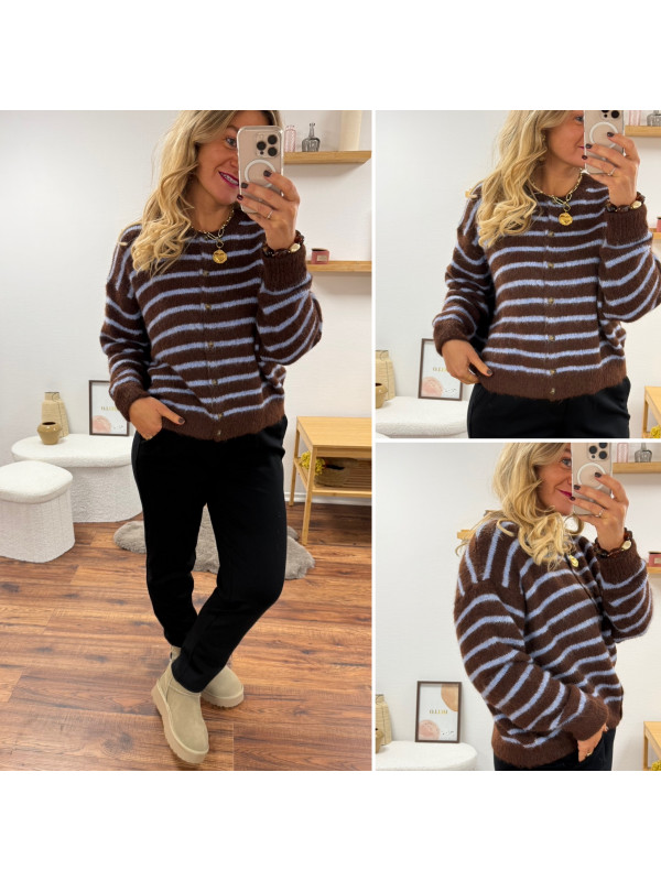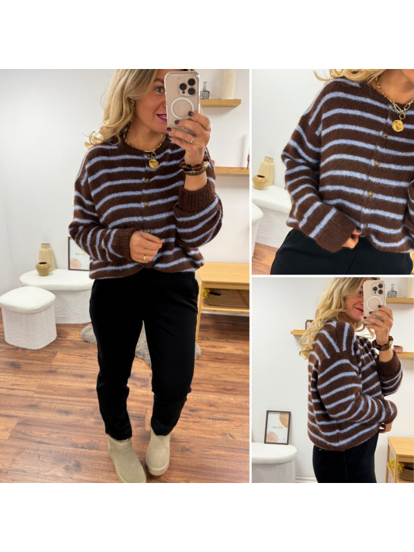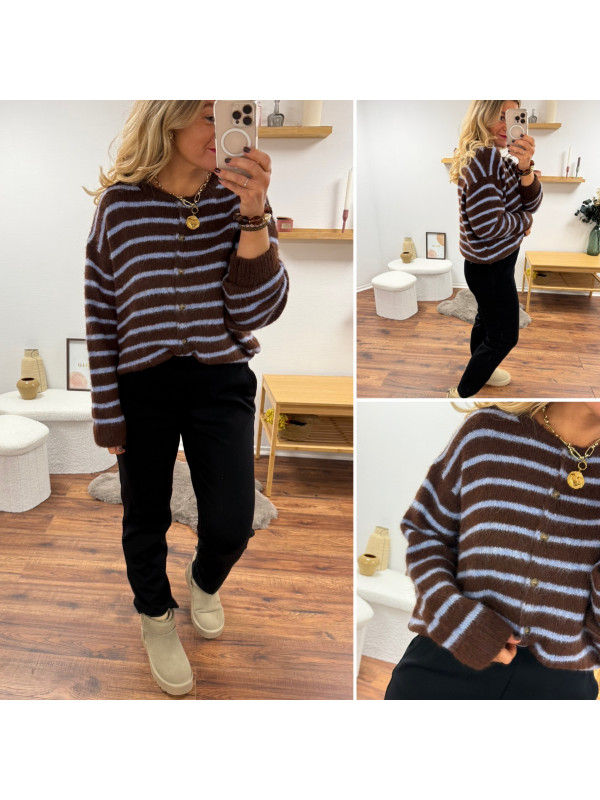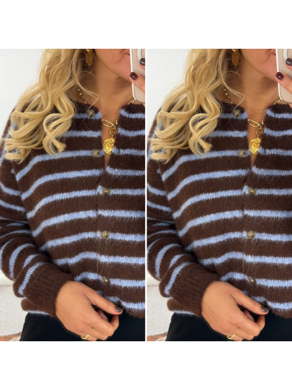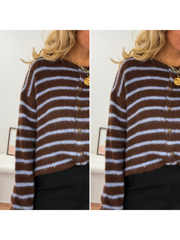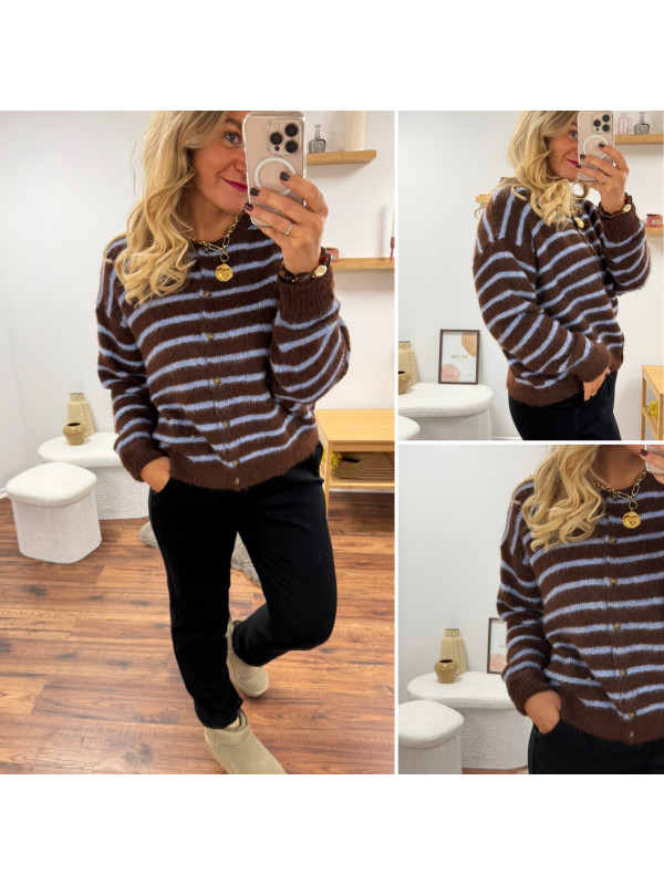 Gilet chocolat avec rayures bleu ciel