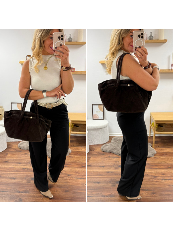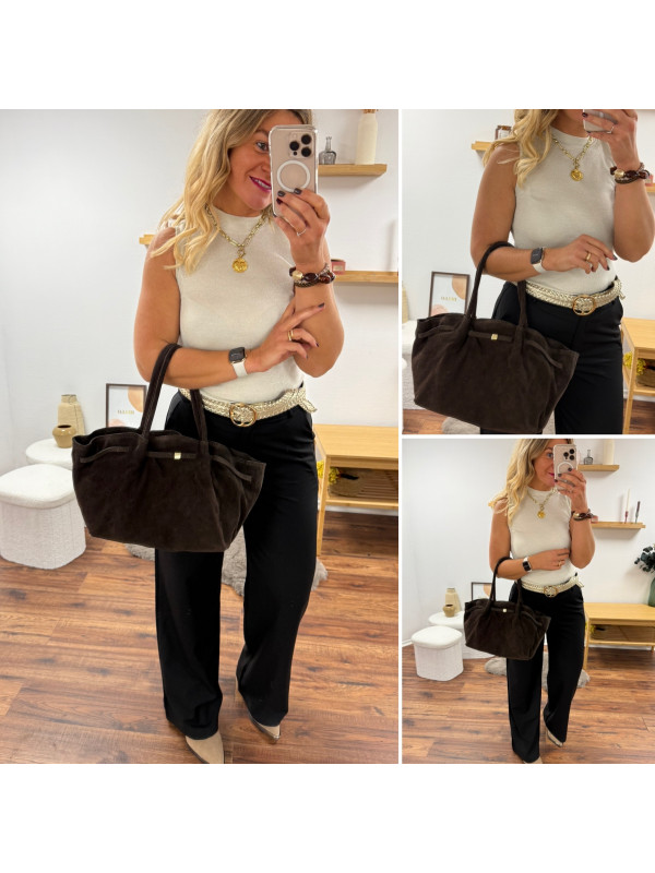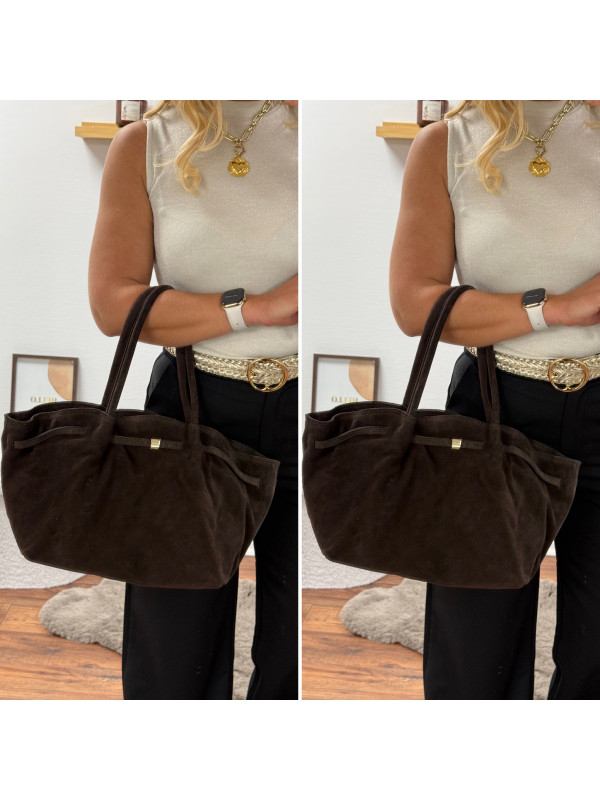 Sac à mains chocolat avec grandes anses et bandoulière (UNIQUEMENT EN MAGASIN)