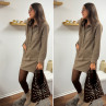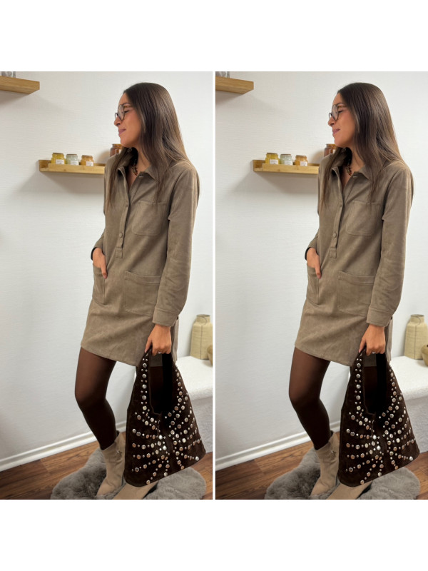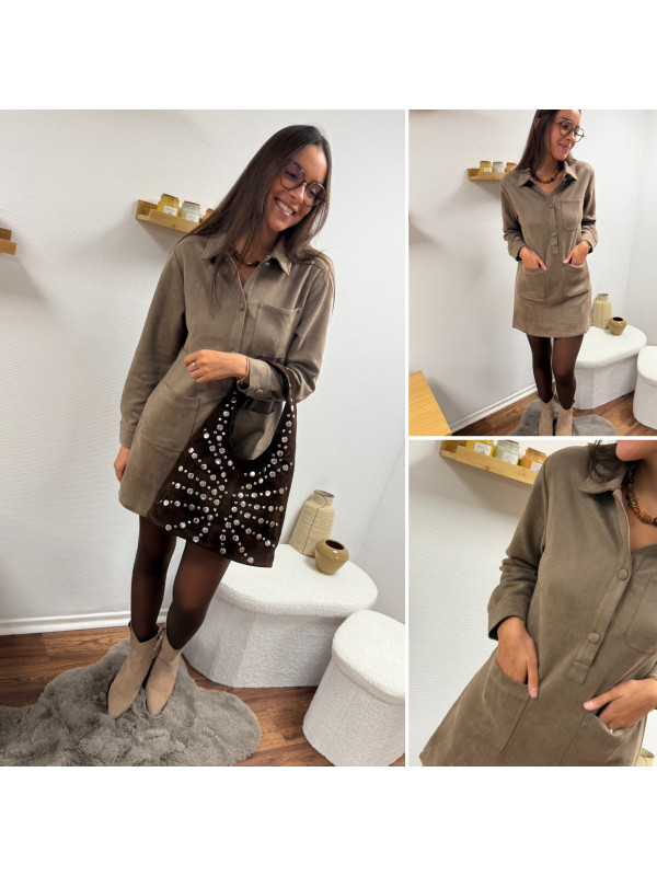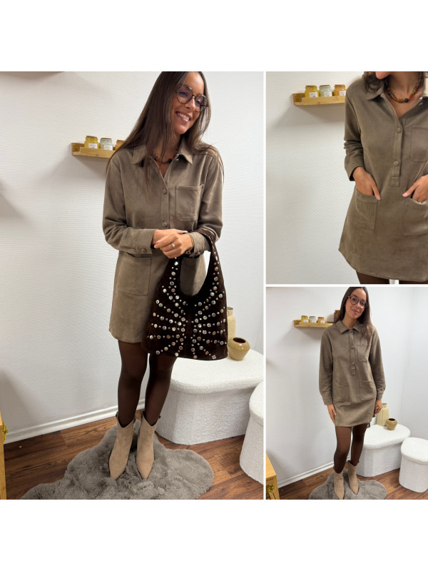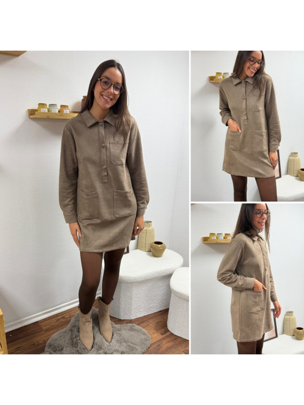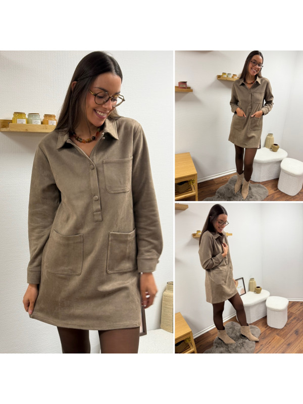 Robe courte en suédine taupe avec poches plaquées