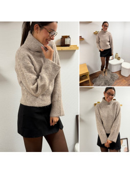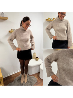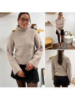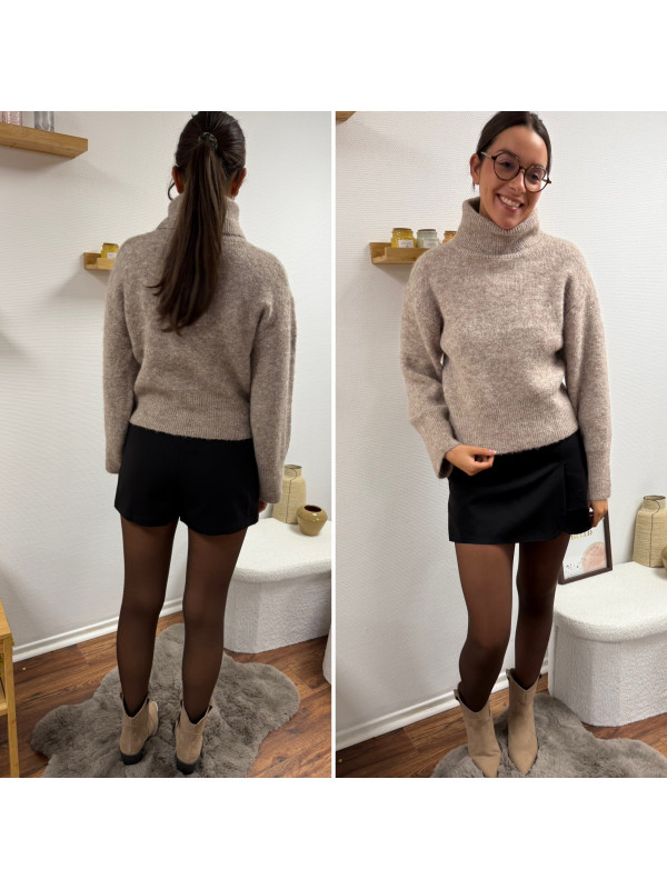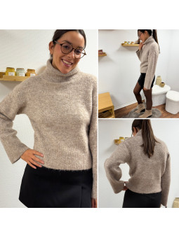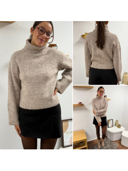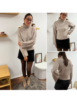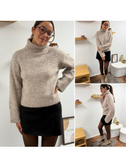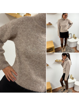 Pull col roulé taupe clair chiné Le SM équivaut au 36-38, le...