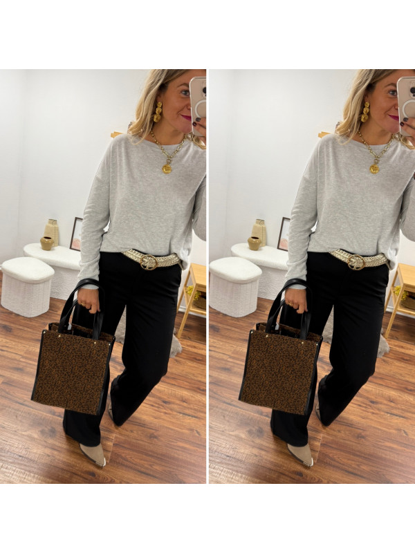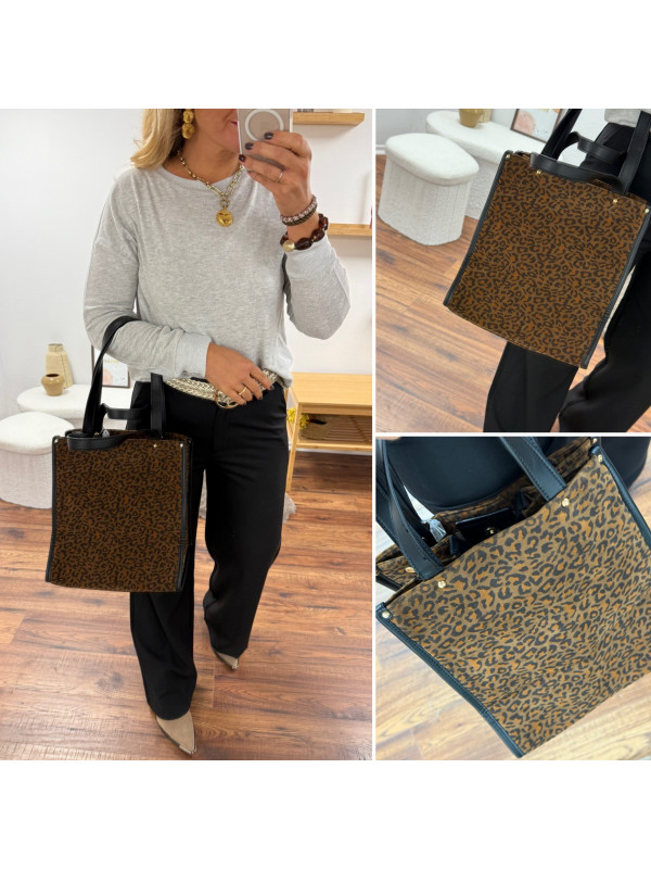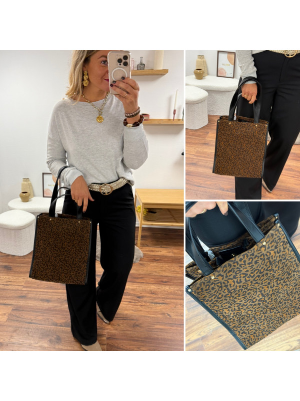 Sac cabas rectangle en suédine façon daim léopard camel (uniquement dispo en boutique)