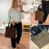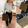 Sac cabas rectangle en suédine façon daim léopard camel avec double poignées
