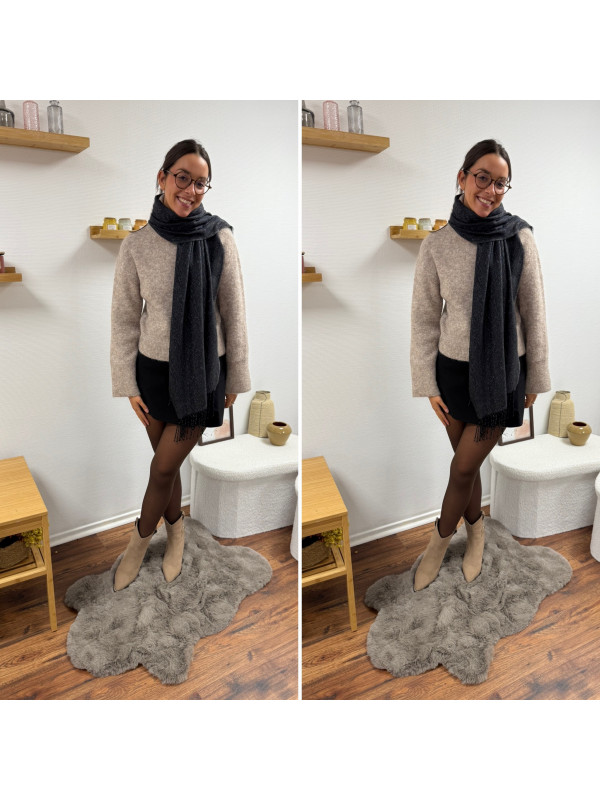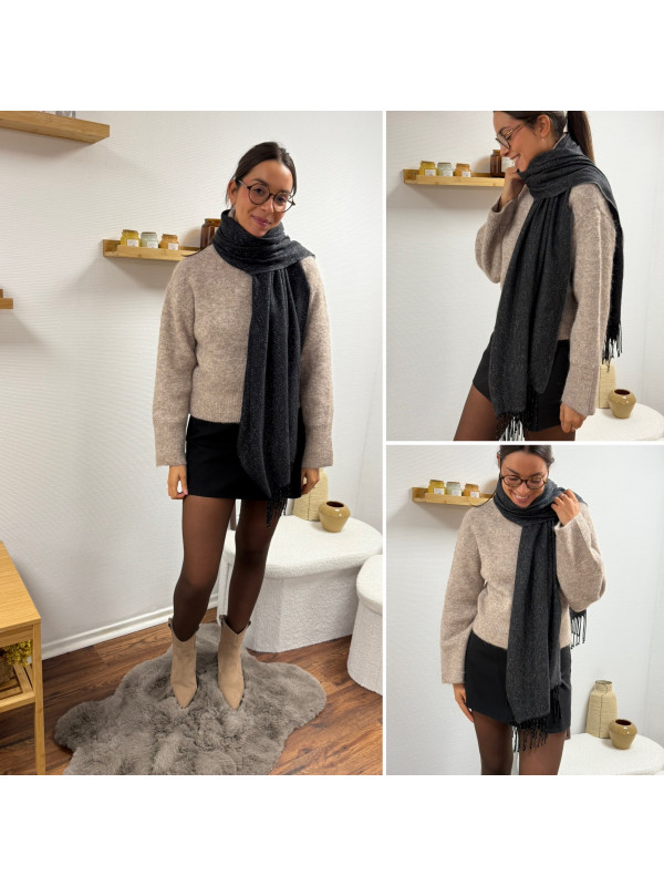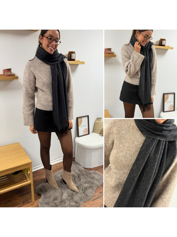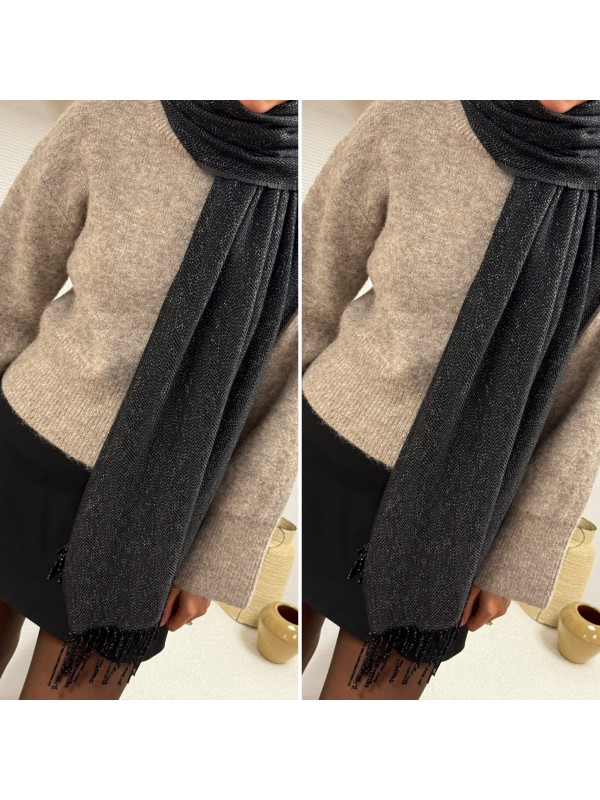 Echarpe gris anthracite en chevron avec fils de lurex brillants