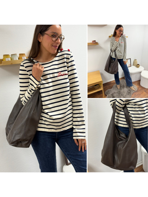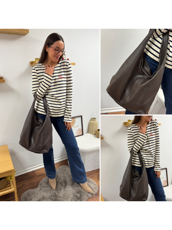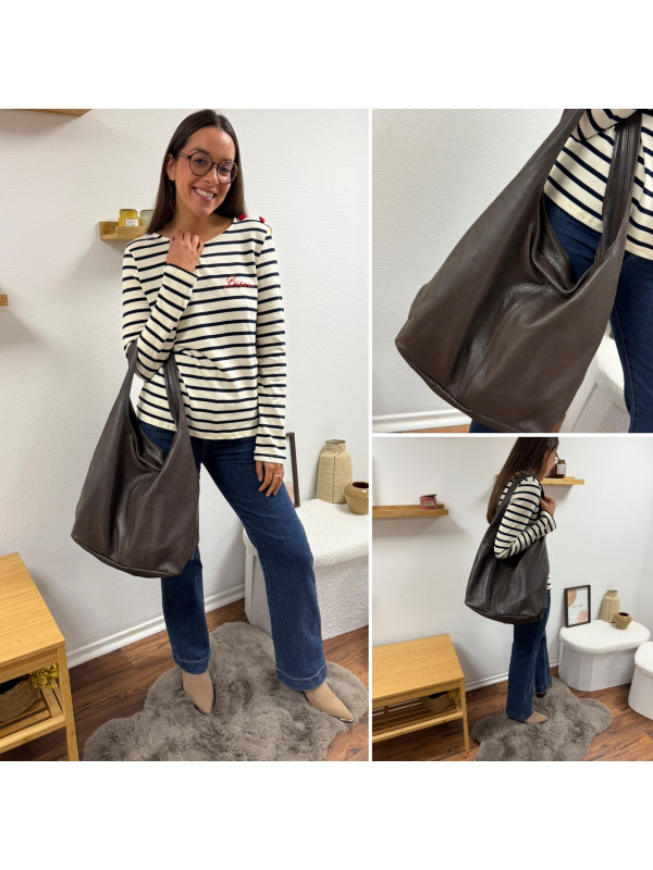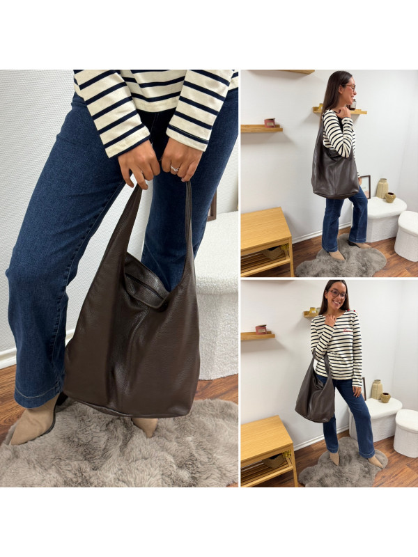 Grand sac à main en cuir grainé chocolat (dispo uniquement en boutique)