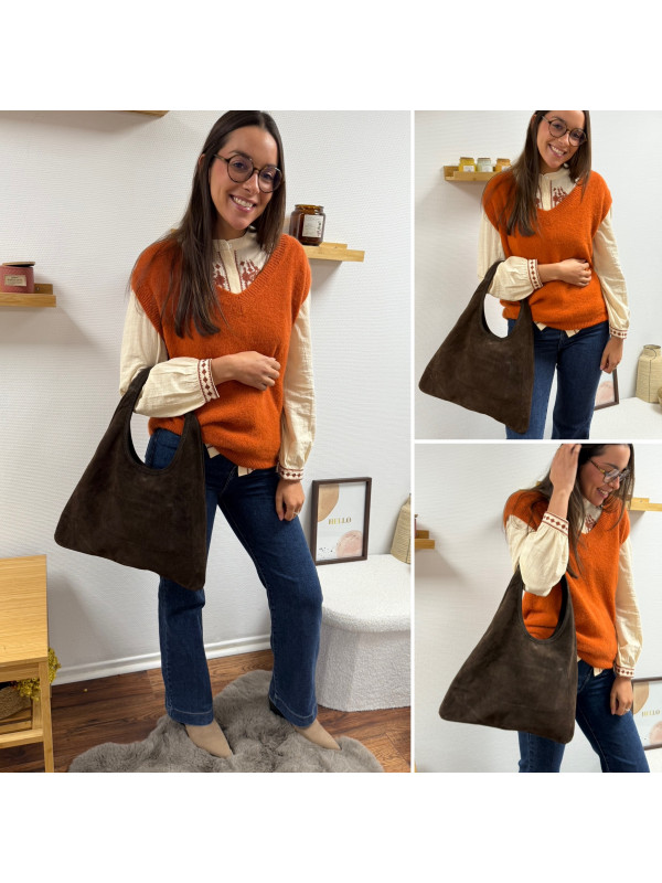 Sac en daim chocolat forme triangulaire (uniquement dispo en boutique)