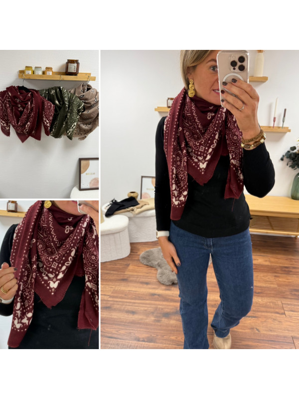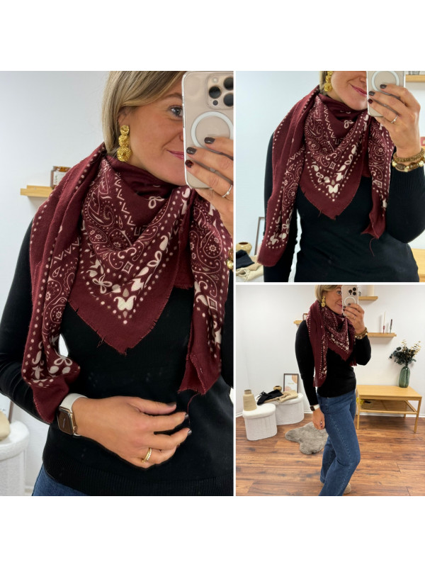 Étole façon bandana bordeaux