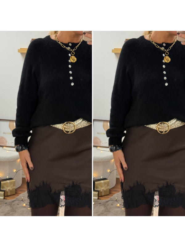 Pull noir en alpaga avec boutons nacrés Cet article en TU...