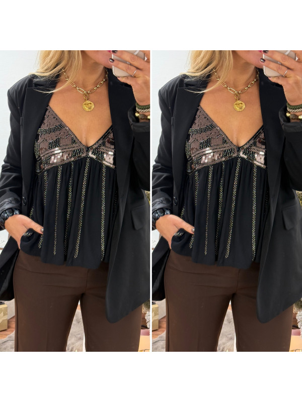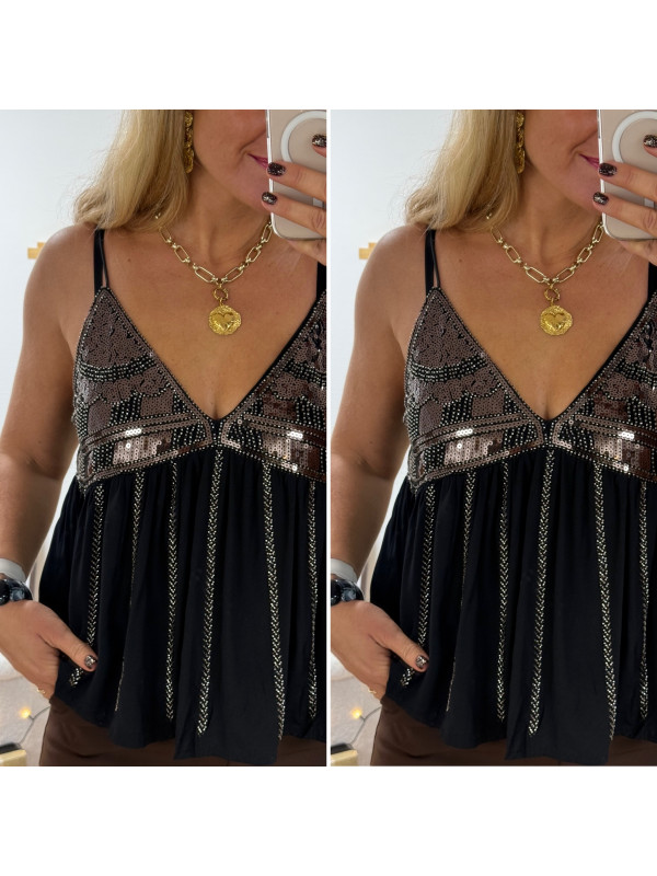 Attention : comme tout article en sequins, cet article est fragile. Il est conseillé de le laver à la main ou dans un filet pour linge délicat, programme délicat, en machine, à froid, sans sèche linge avec essorage très doux.