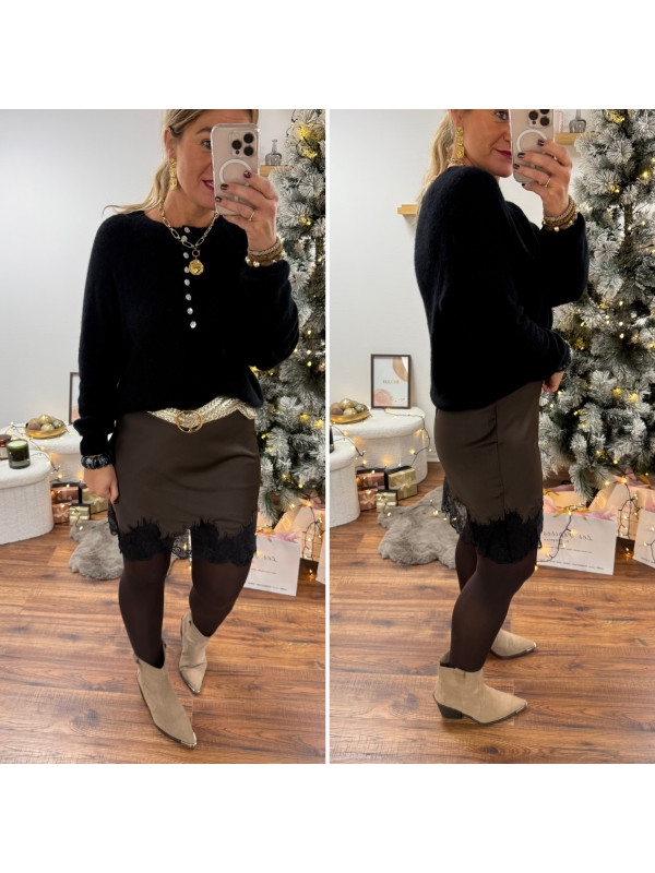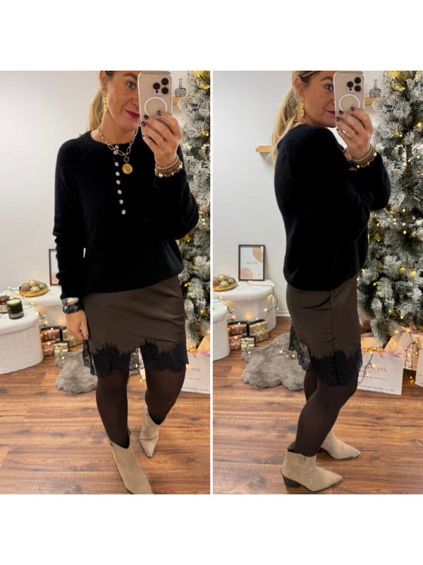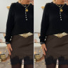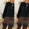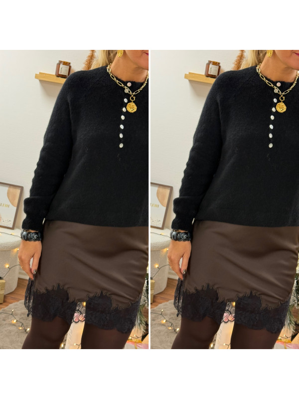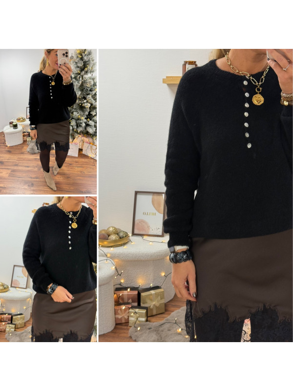 Pull noir en alpaga avec boutons nacrés