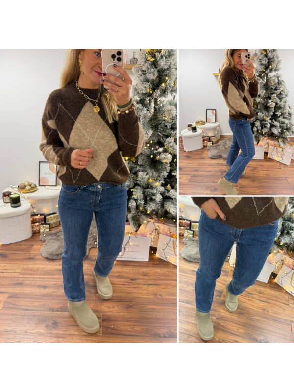 Pull choco à carreaux en losange beiges Cet article en TU...