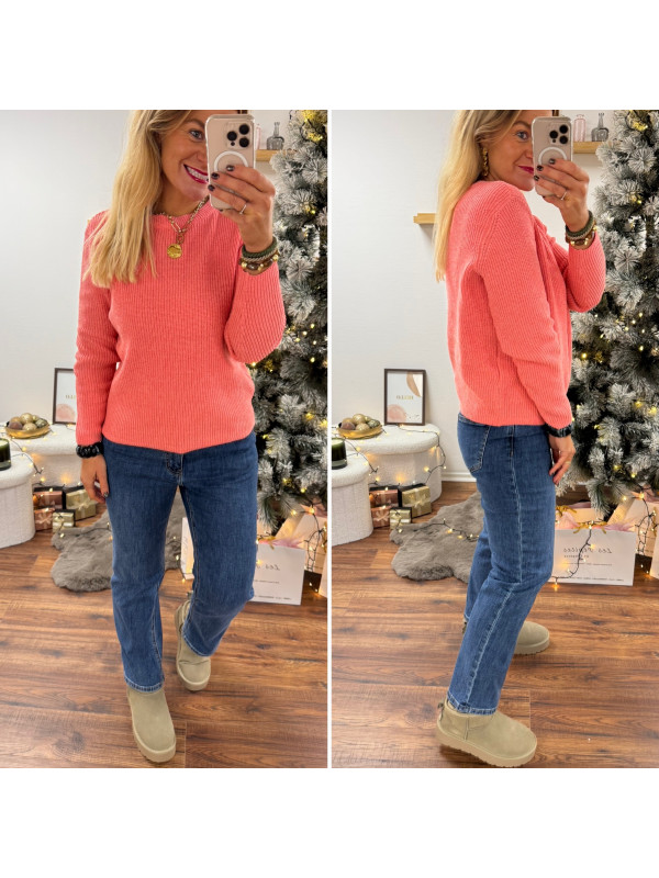 Pull col rond rose corail tout doux (du 36 au 46) Disponible...
