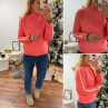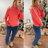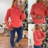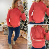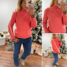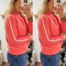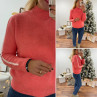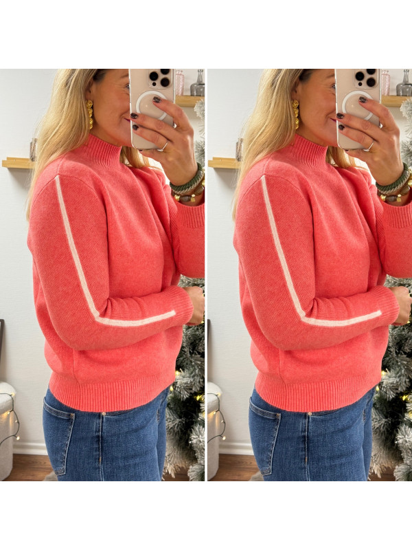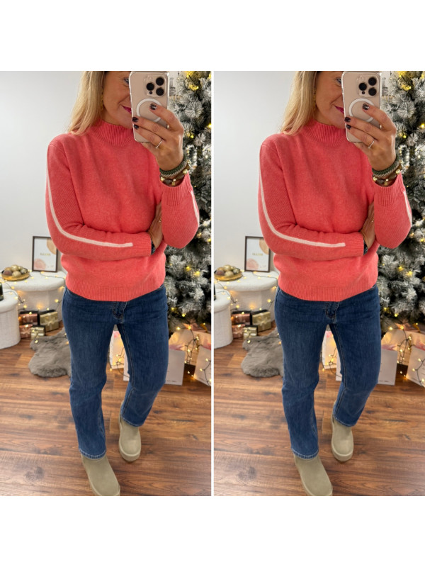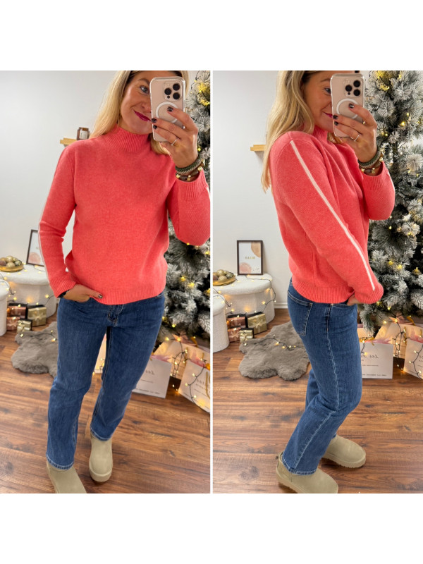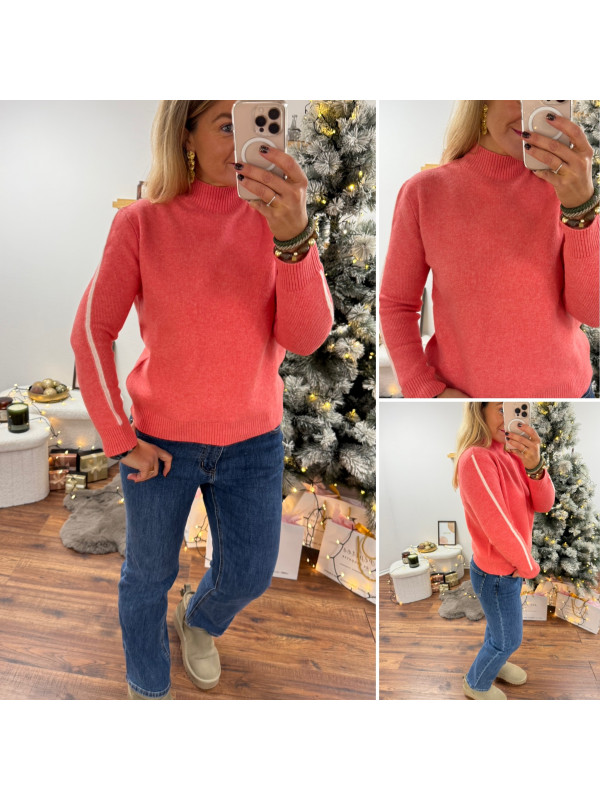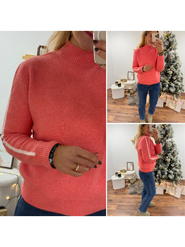 Pull col montant rose corail avec bande blanches sur les manches (du 36 au 46)