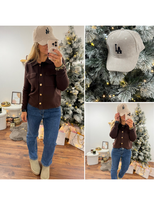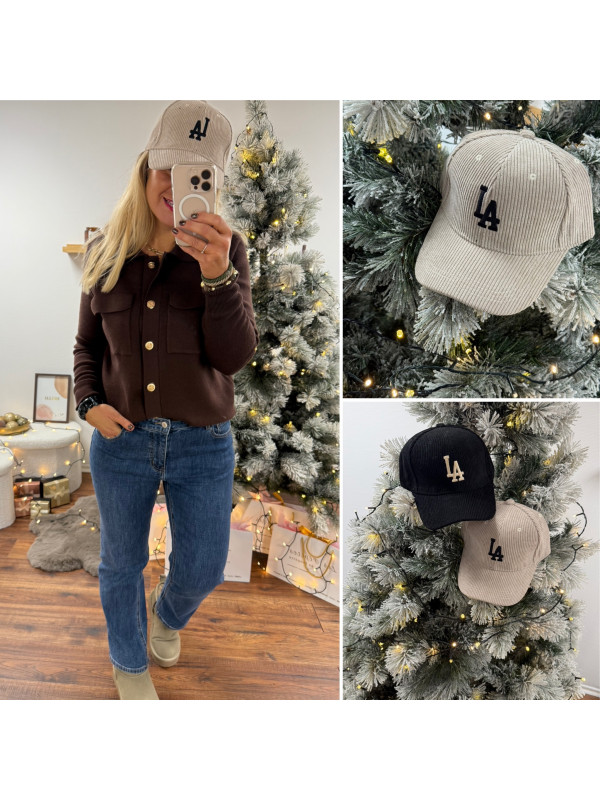Casquette velours beige avec logo LA