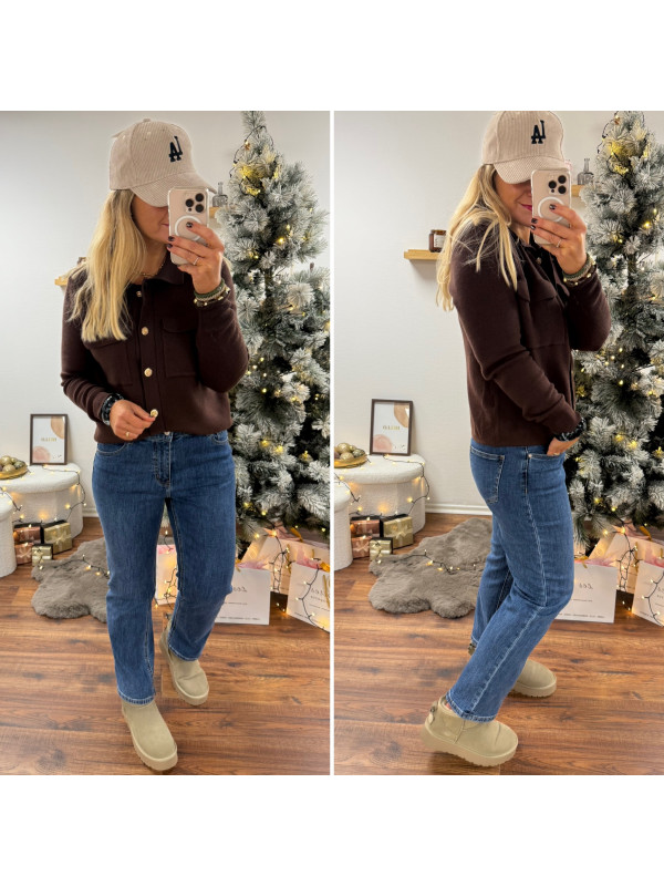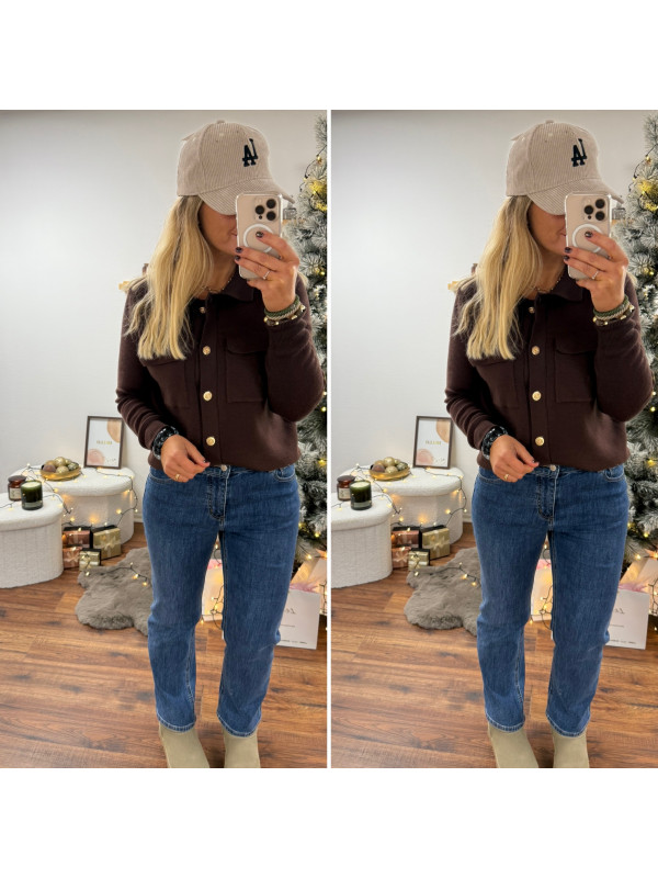 Gilet chocolat avec boutons dorés et poches plaquées Cet...