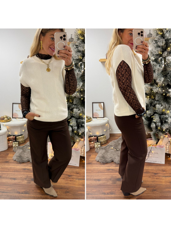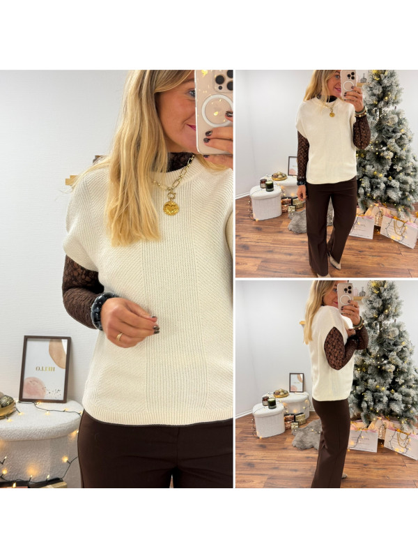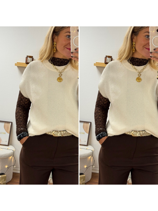 Pull sans manches écru avec maille côtelée (du 36 au 46)
