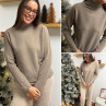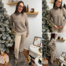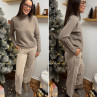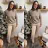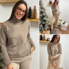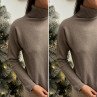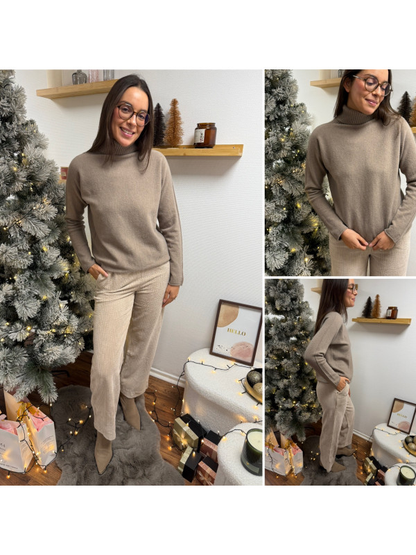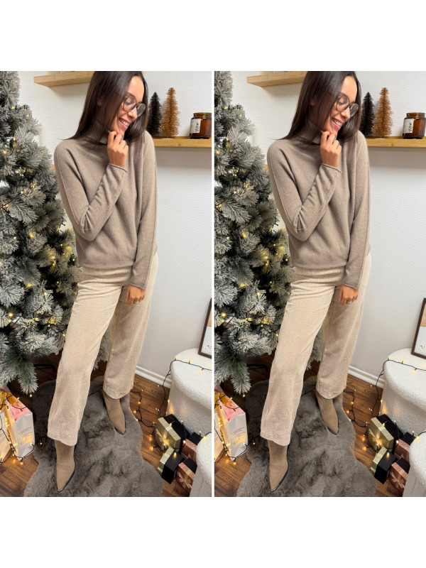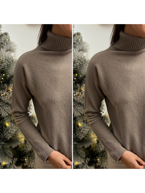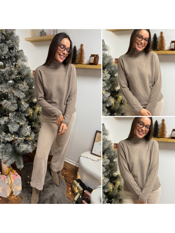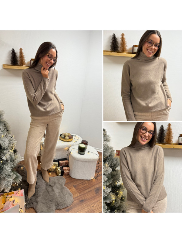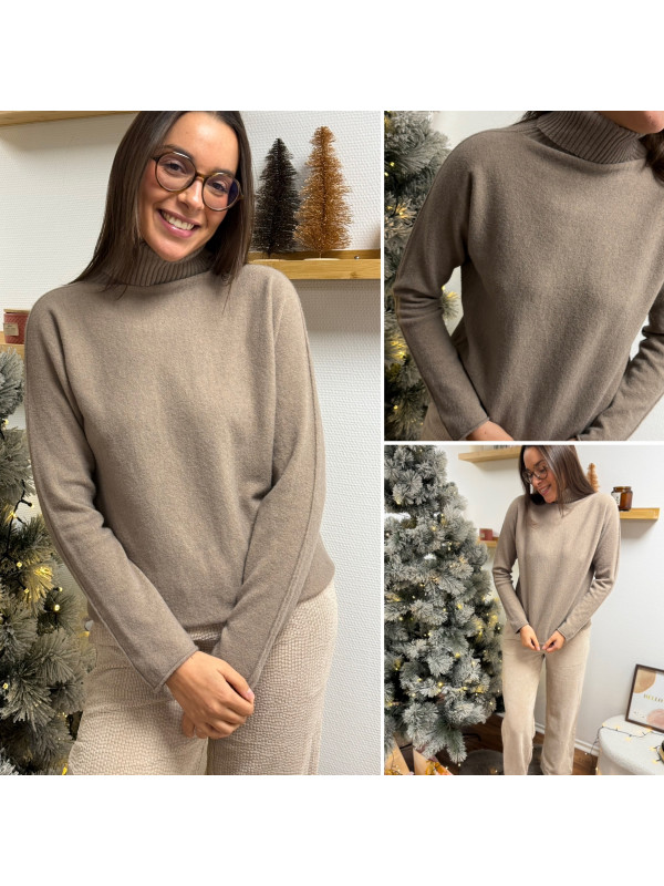 Pull col roulé taupe avec col en maille côtelée